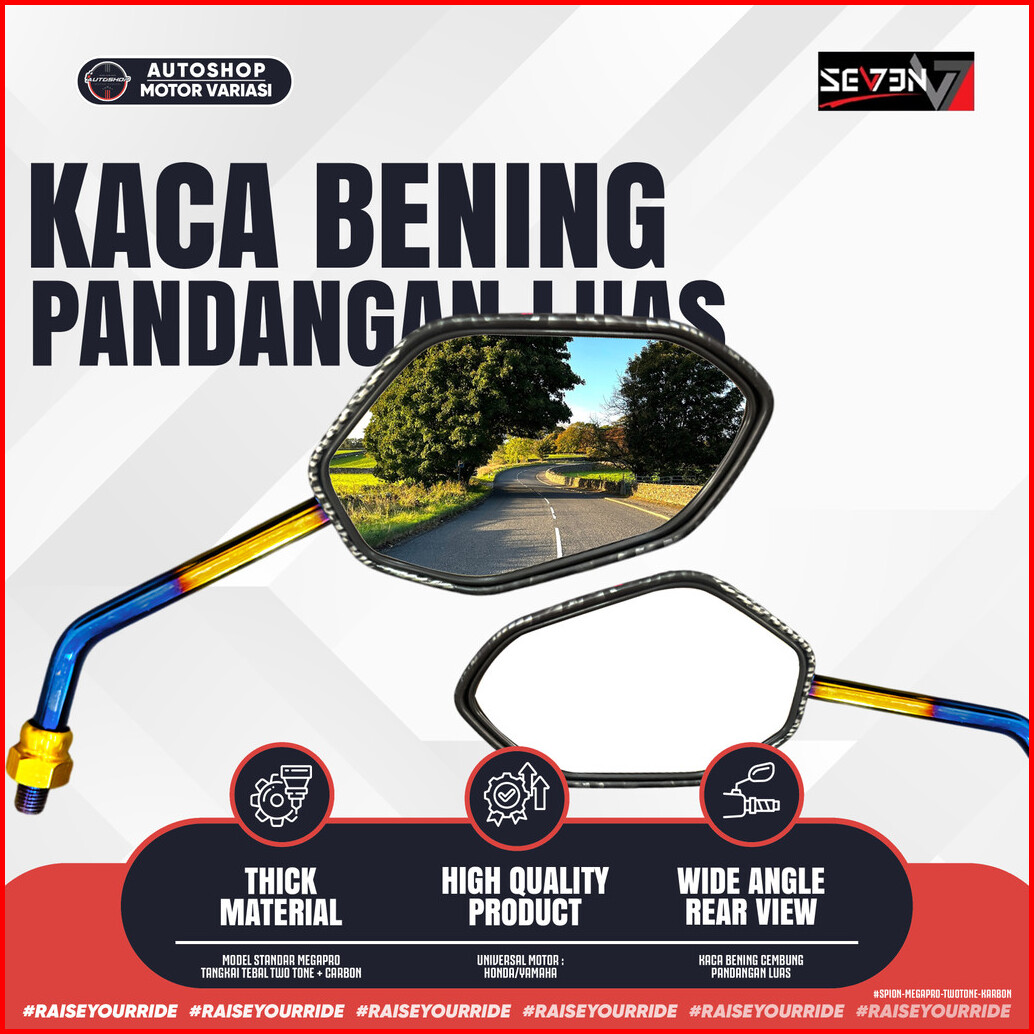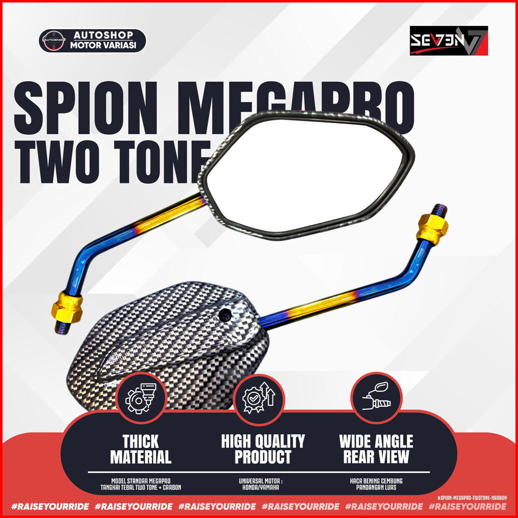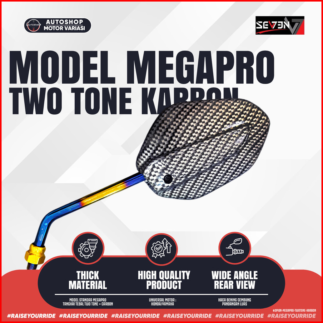 Spion Moge Model Megapro Two Tone Blue Blue Carbon Kaca Cembung Bening Universal Motor Honda Yamaha