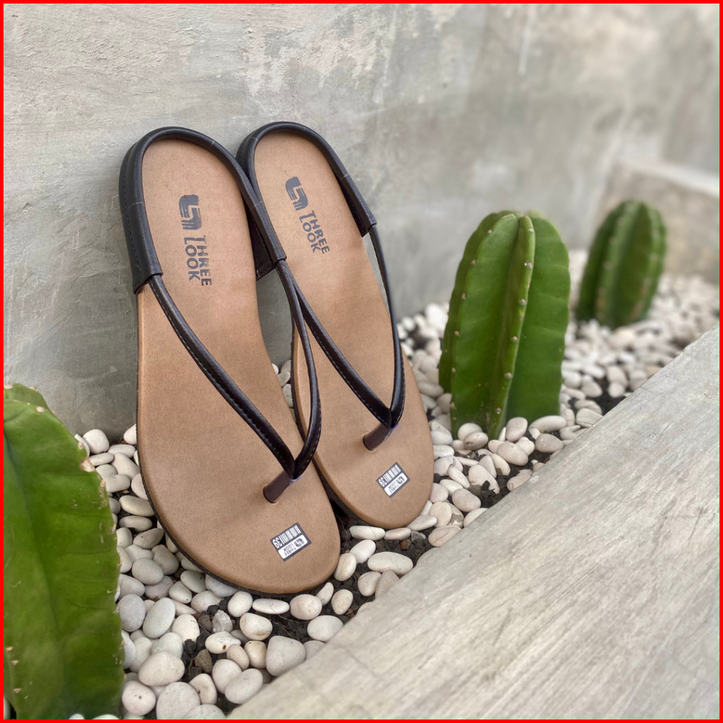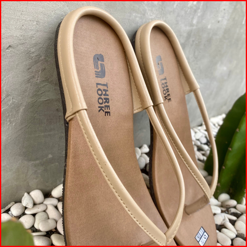 Threelook - Sandal Kulit Wanita Dewasa Jepit Slip-on Flat Mules Terbaru 2024 - Friska