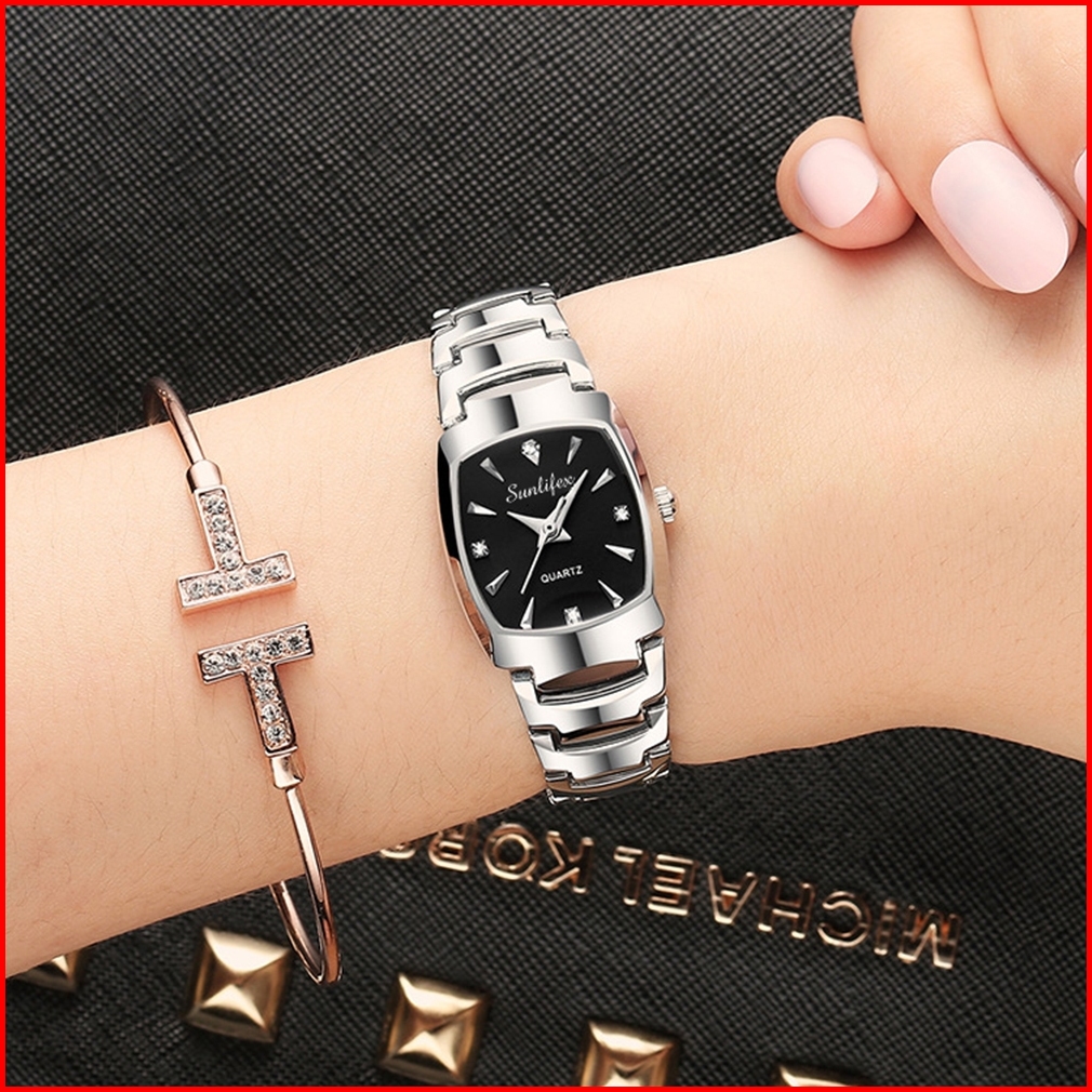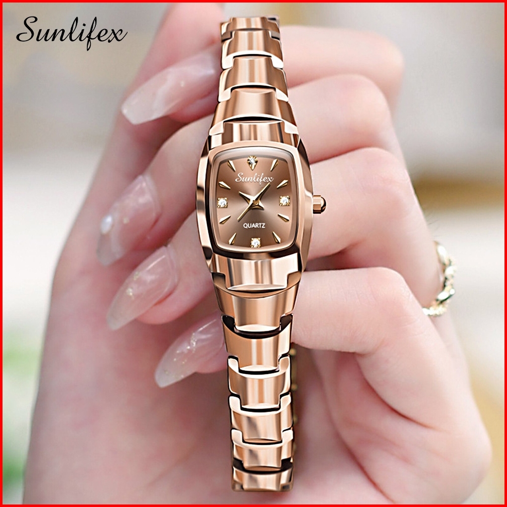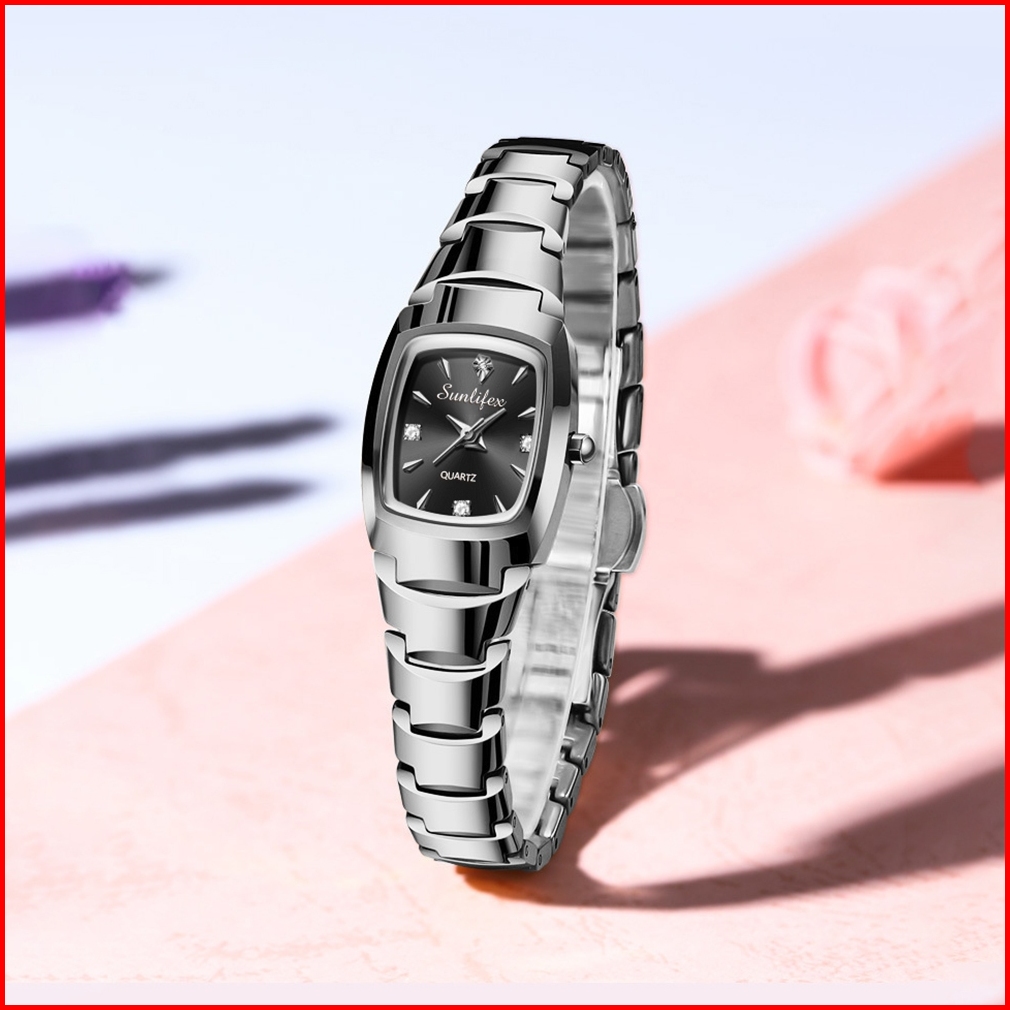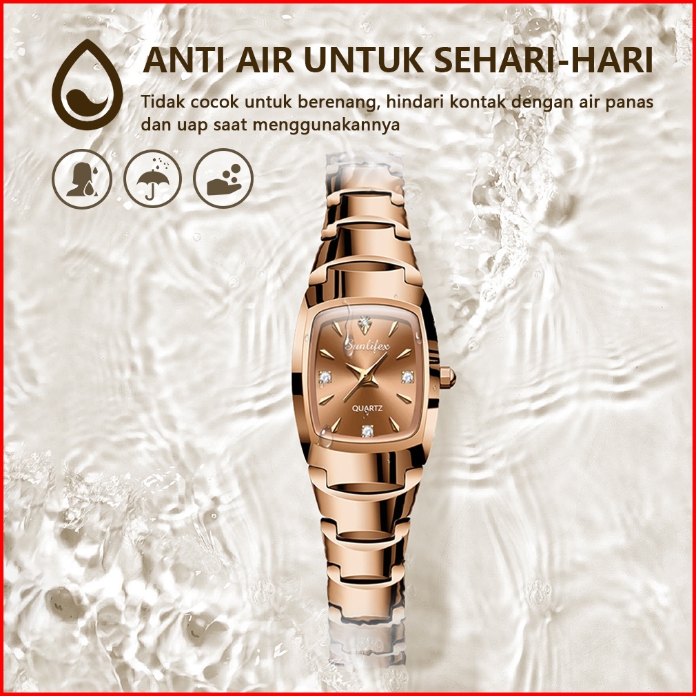Sunlifex 9089 New Jam Tangan Wanita Korea Elegan Bisnis Kasual Persegi Anti Air Tali Paduan Cewek