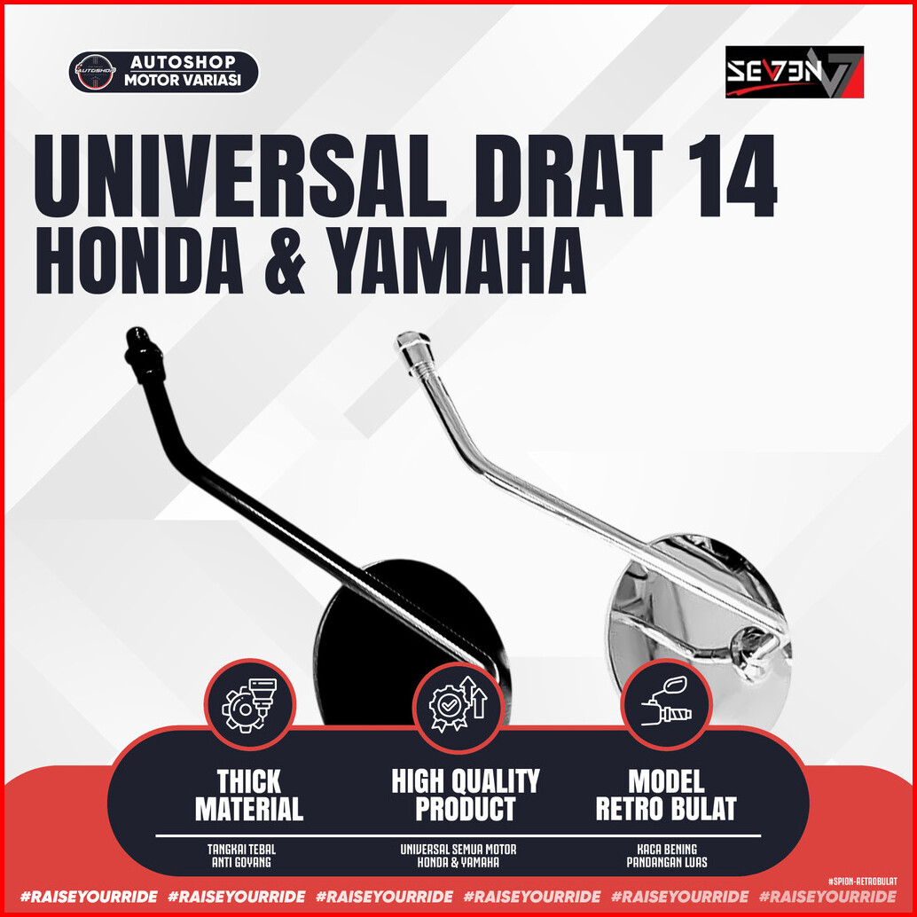 Spion Bulat Scoopy Fazzio Fino Retro Classic Kaca Datar Tangkai Panjang Universal Motor - Seven