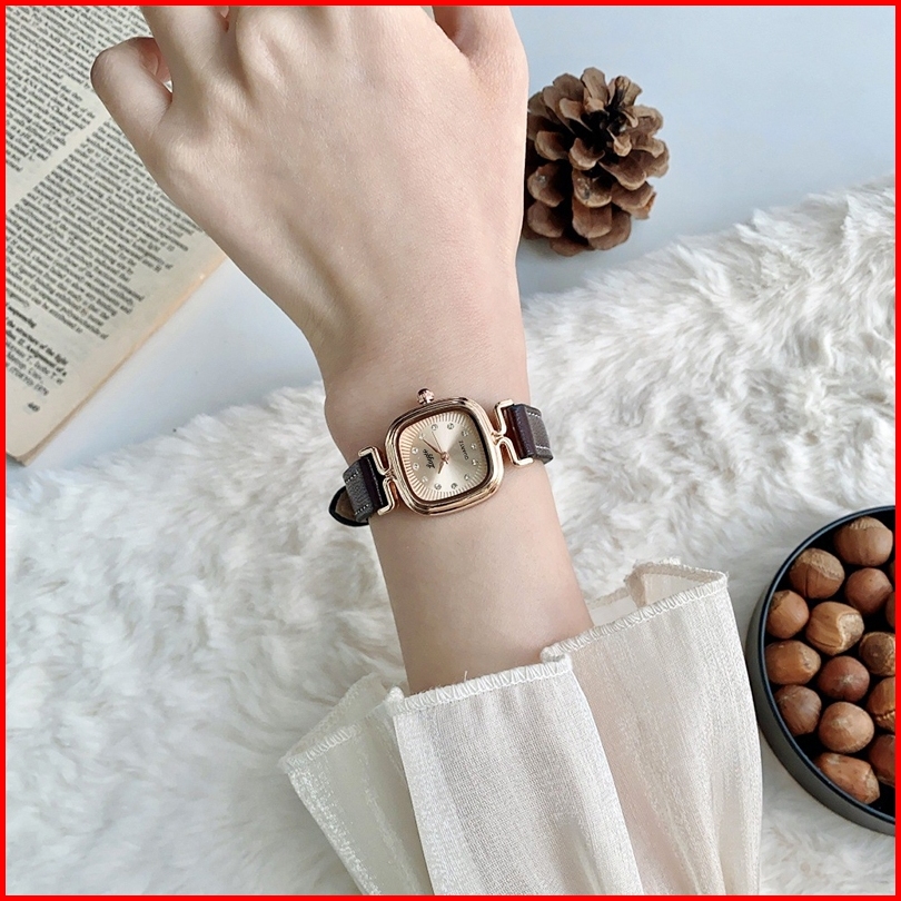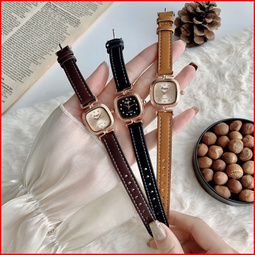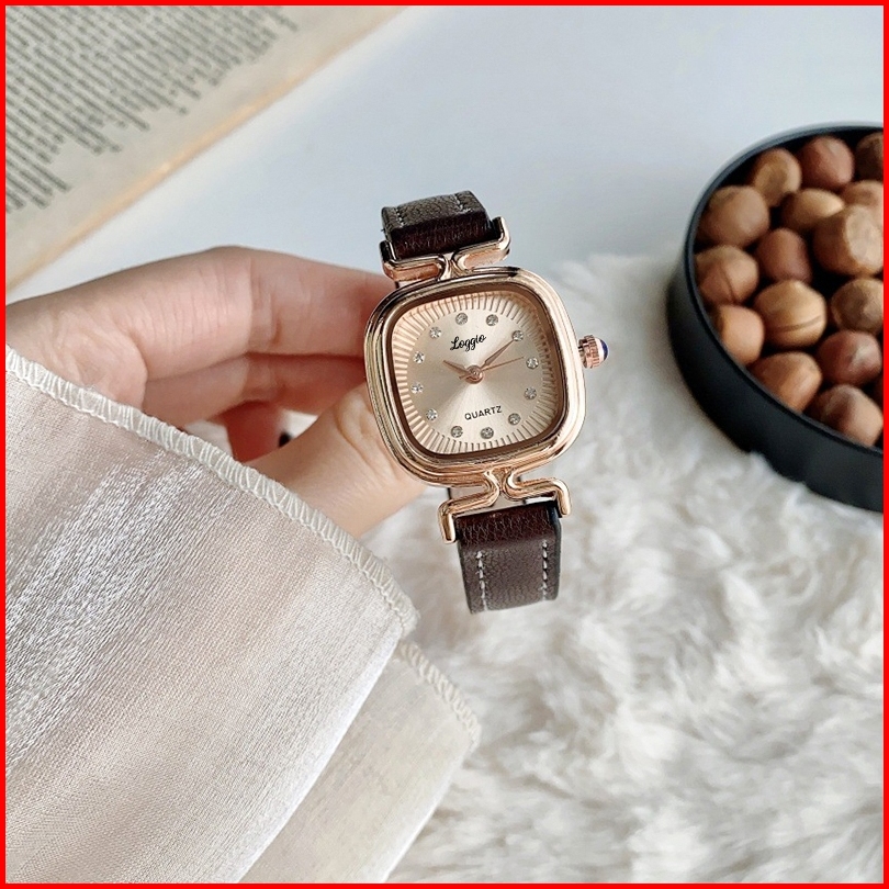 Loggio Jam Tangan Wanita Kulit Pointer Original Korea Retro Anggun Kuarsa Berlian Jam Tangan Cewek