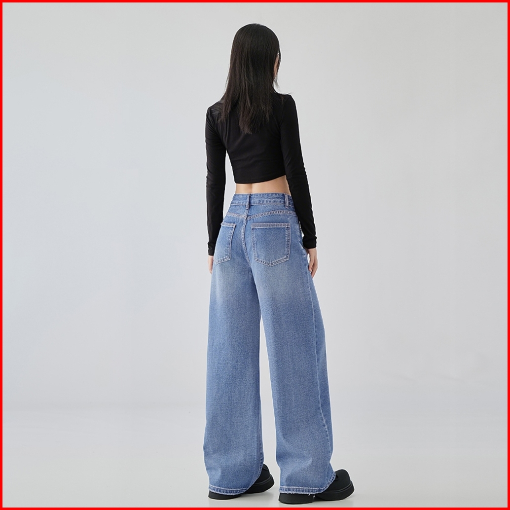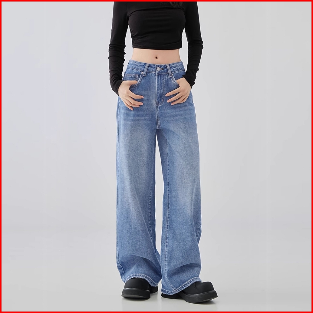 Straight Cut Jeans Terbaru 2025 High Waist Loose Plus Size Celana Jeans Wanita