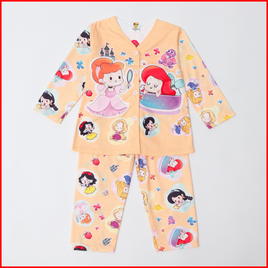 Sibulat 40 Setelan Piyama Princess Gambar Besar Dan Kecil Usia 1-6 Tahun