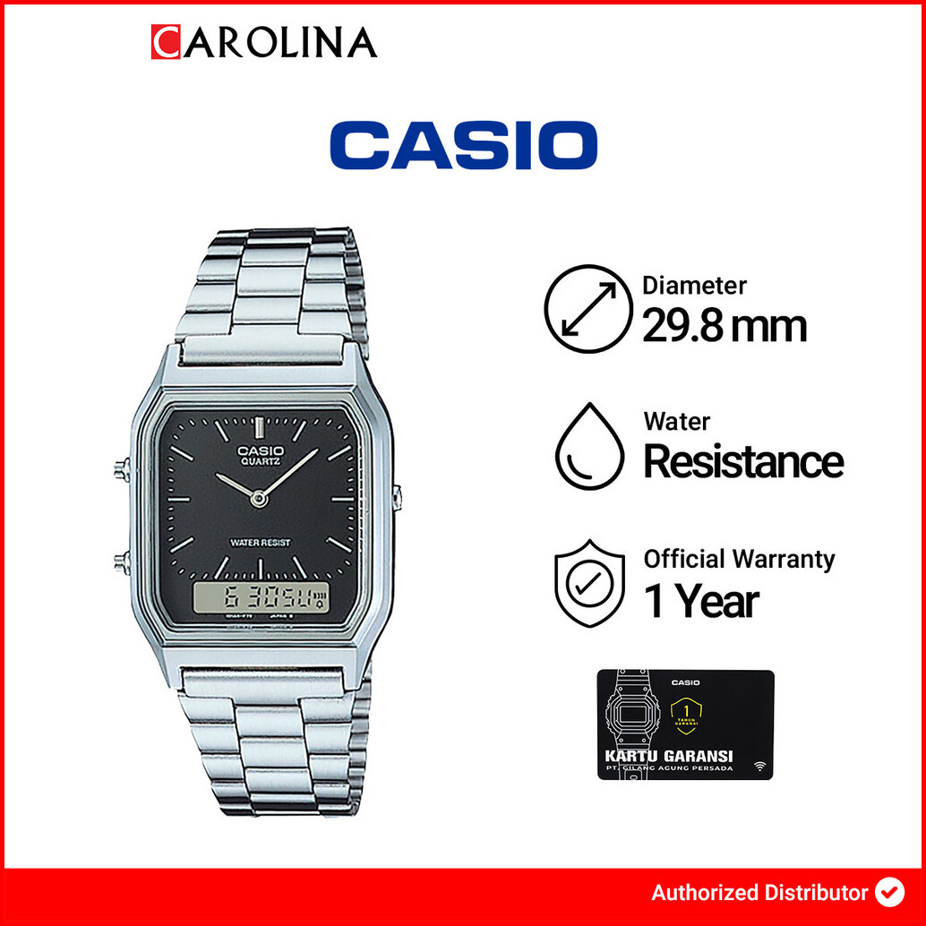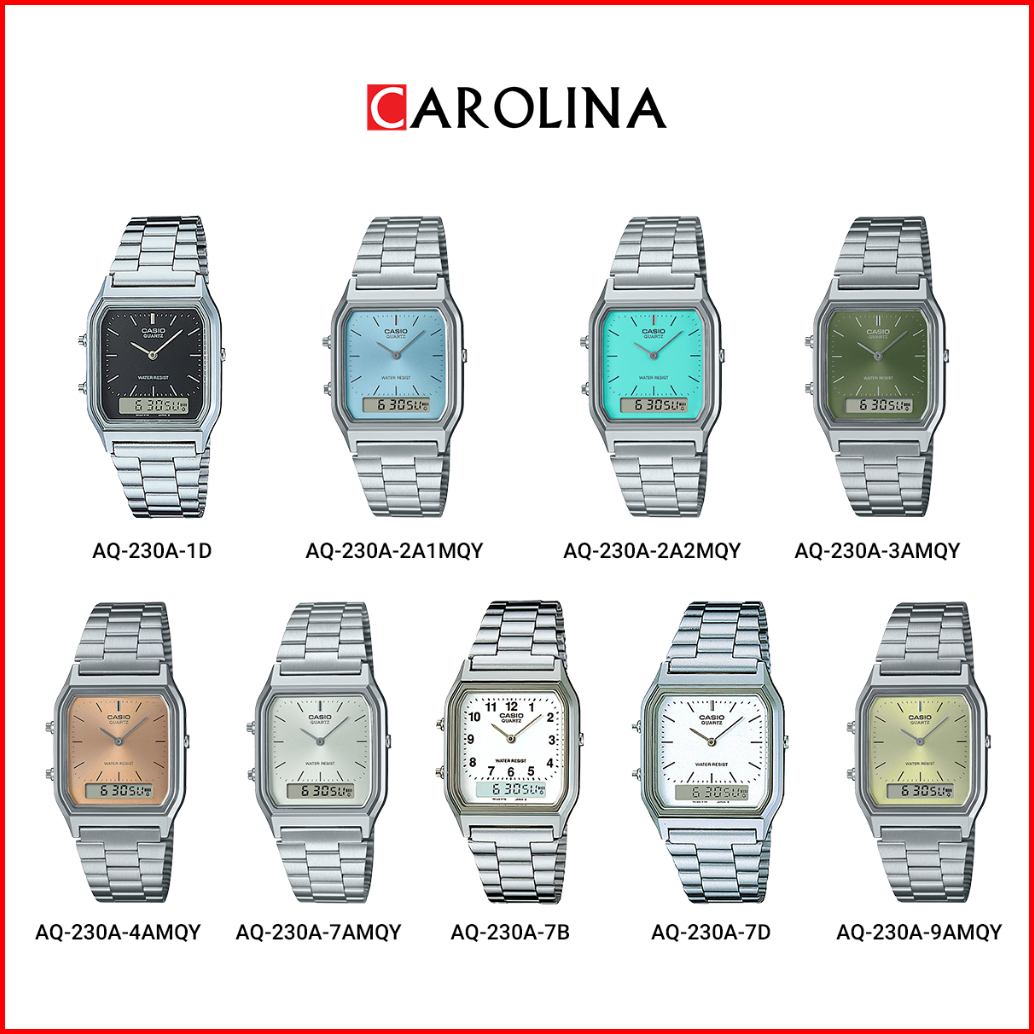 Jam Tangan Pria Casio General Aq-230a-1d Digital Analog Dial Stainless Steel Band