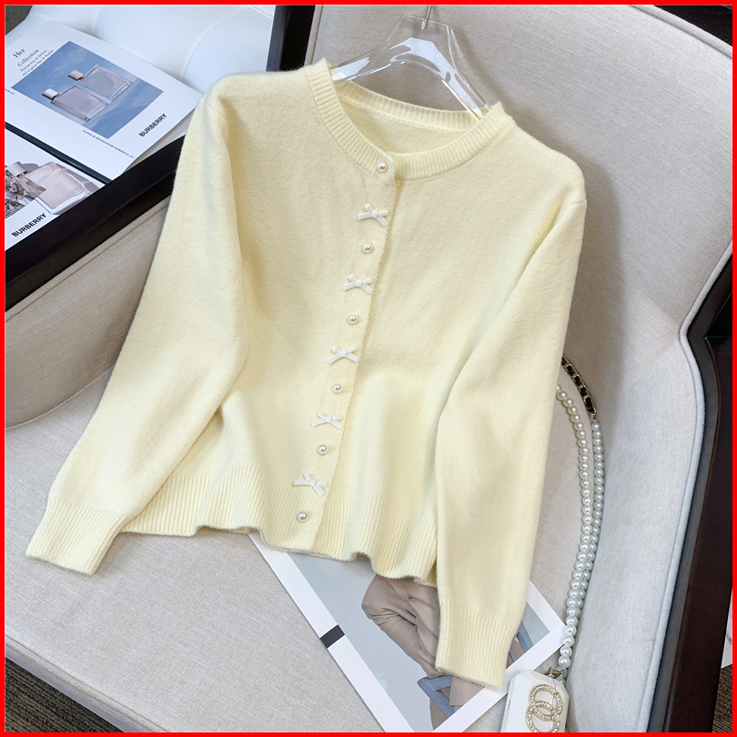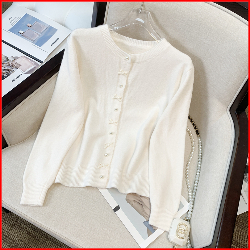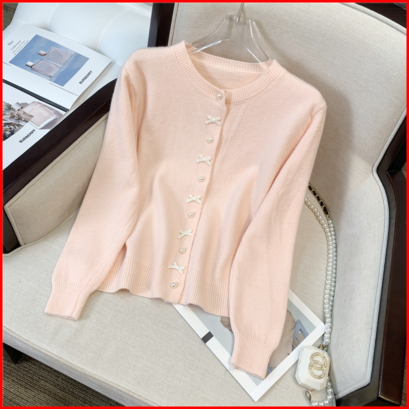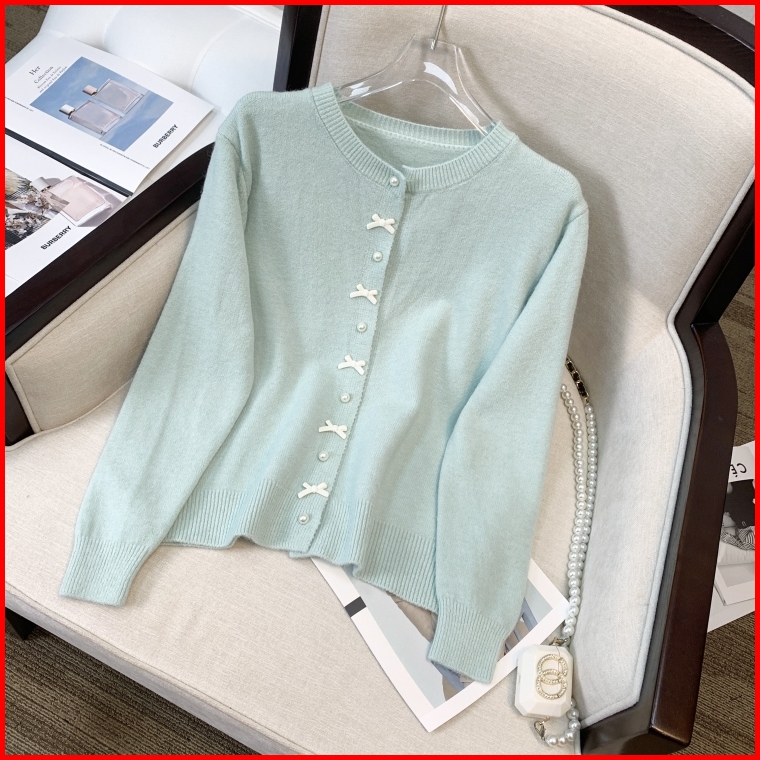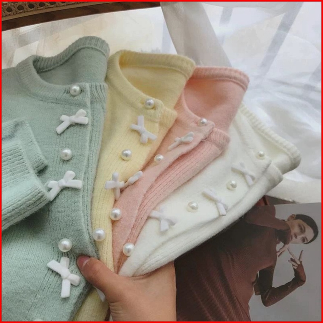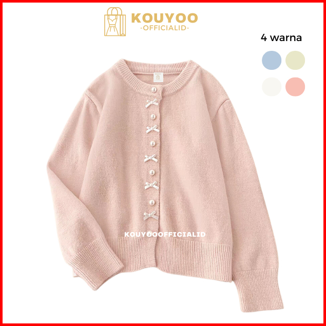 Kouyoo Coquette Cardigan Wol Pita Imut Ribbon Girly Rajut Korean Style Knit Top Pink Putih Hijau