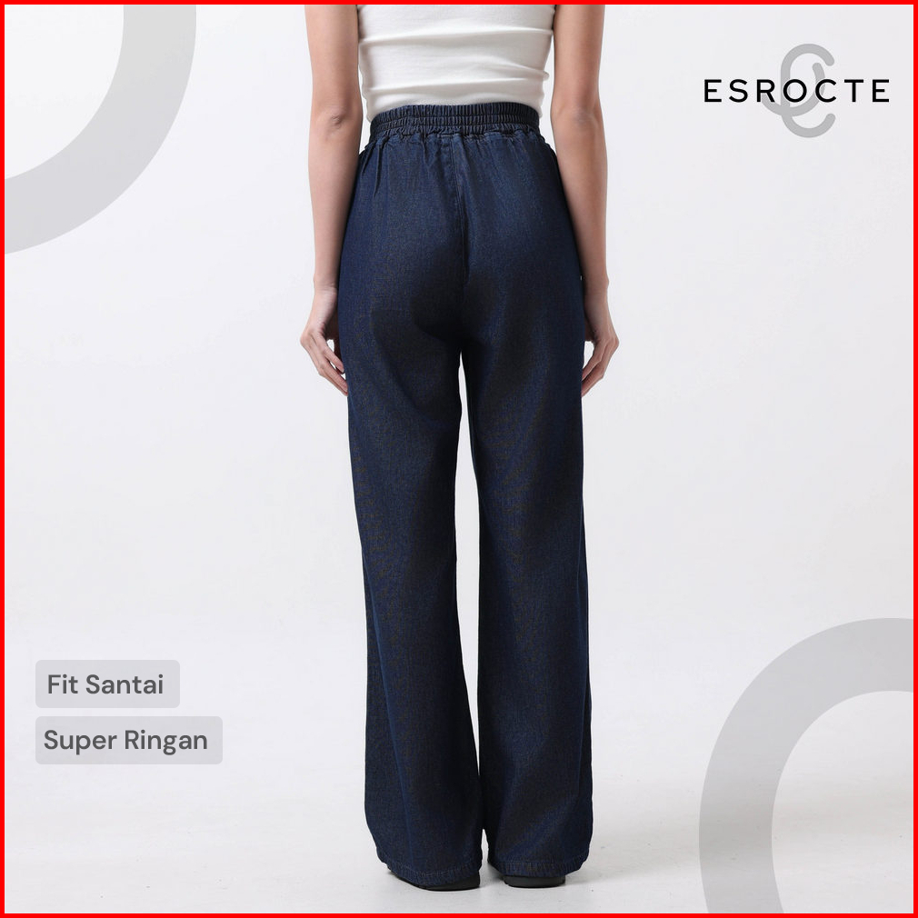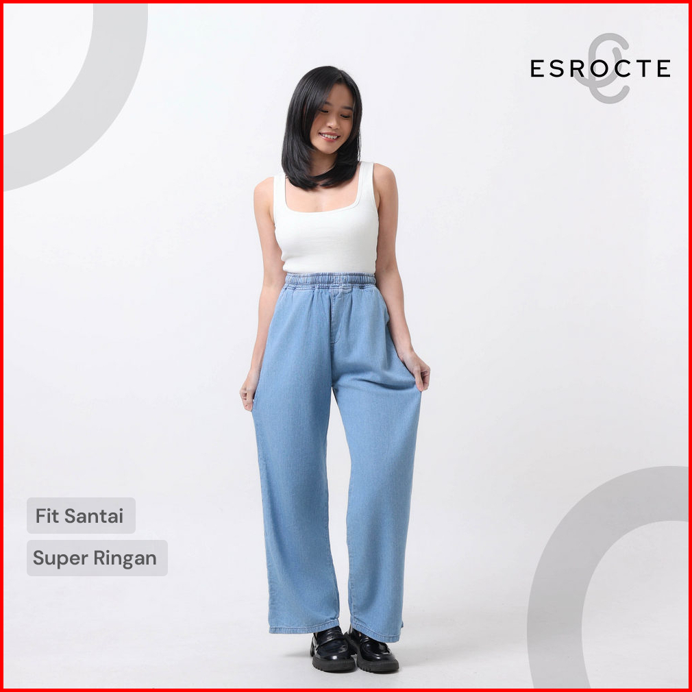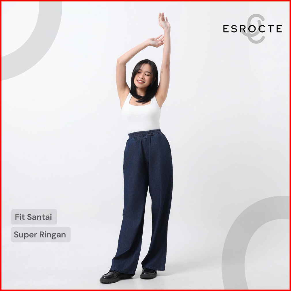 Esrocte Leya Pants Celana Loose Relaxed Jeans Full Karet High-waist Wanita Plain Edition S-xxl