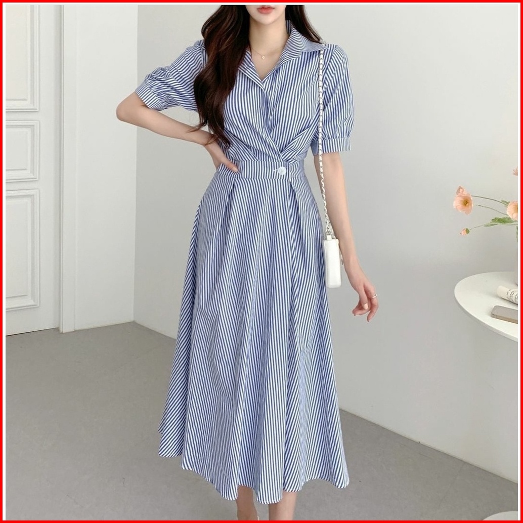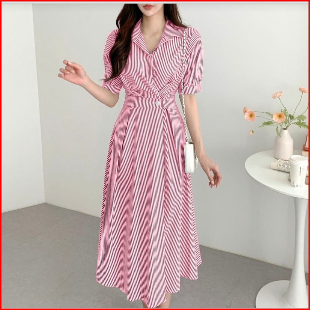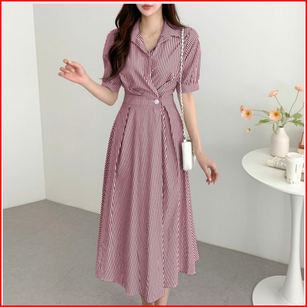 Fwg - Dress Gani Stripe Dress Wanita Baju Dres Wanita Korea Dress Salur Dres Pakaian Wanita