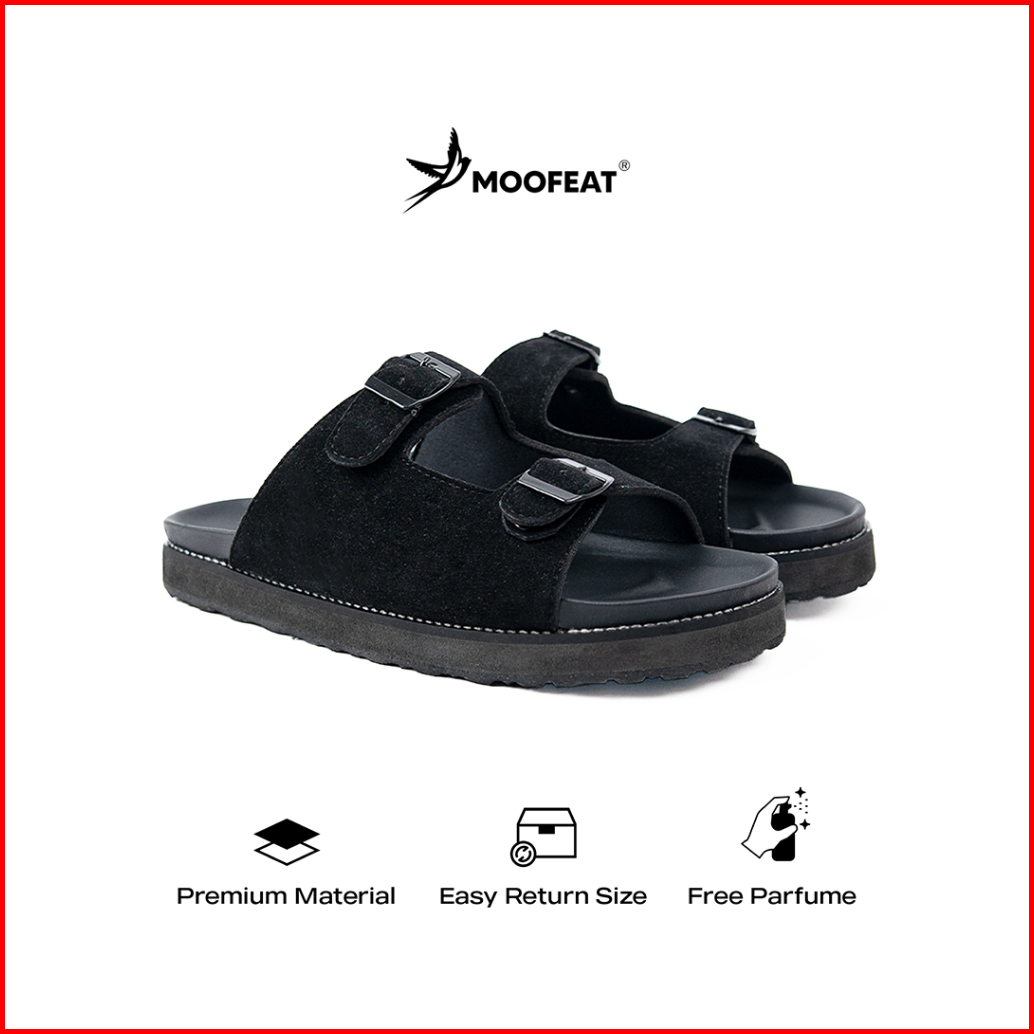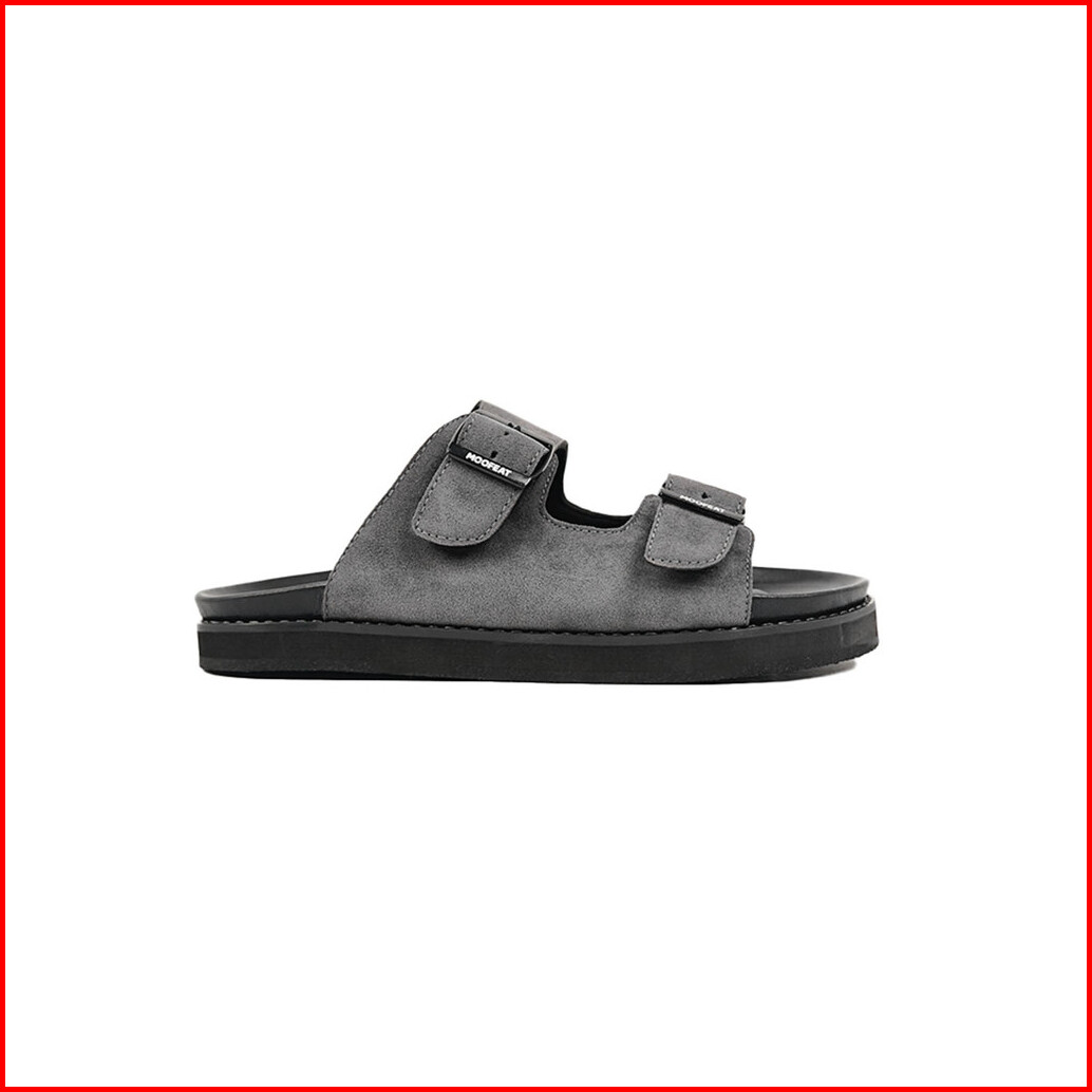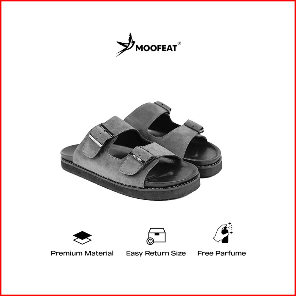 Moofeat Miller - Sandal Slide Footbed Casual Vintage Two Strap Pria Hitam Abu