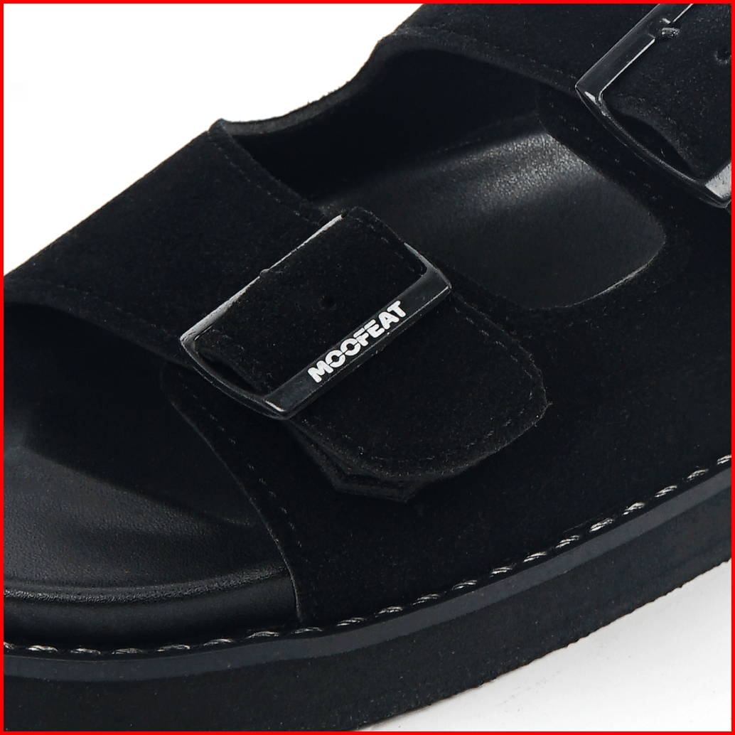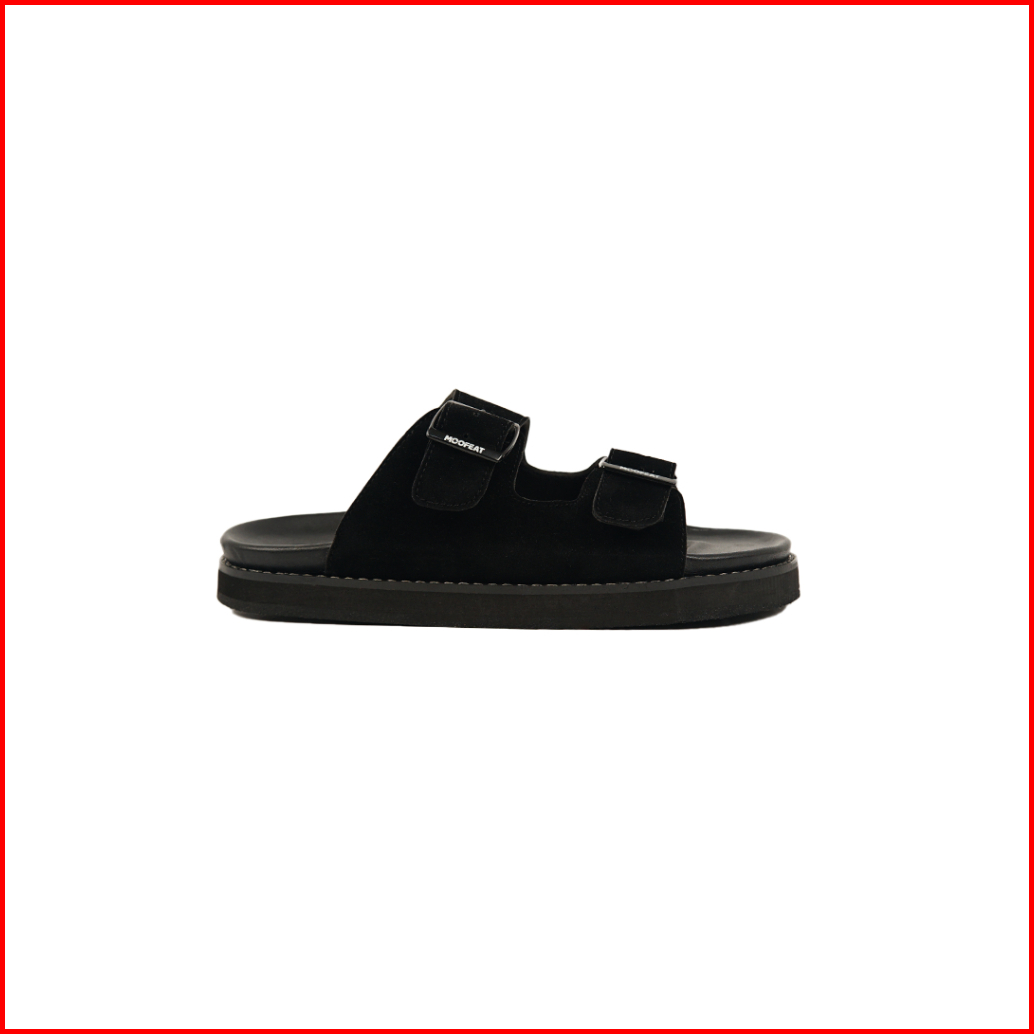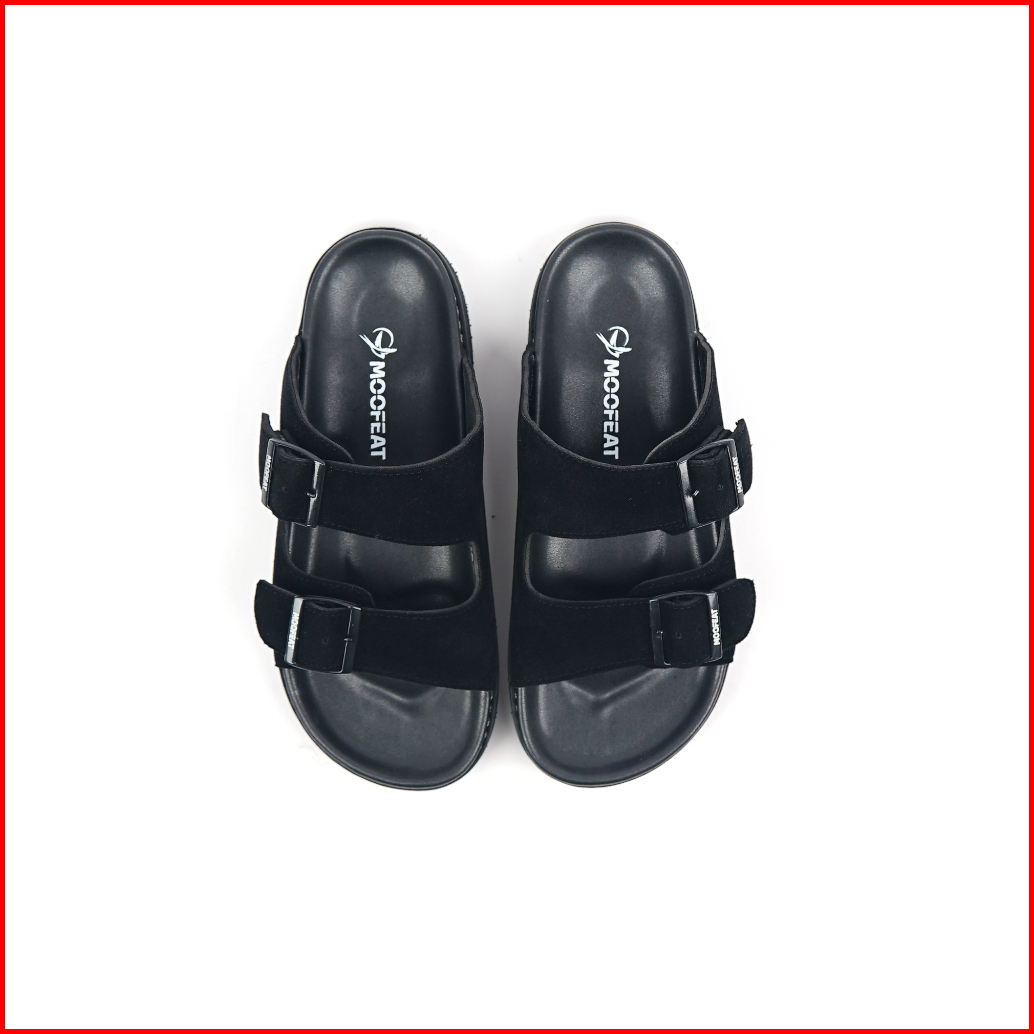 Moofeat Miller - Sandal Slide Footbed Casual Vintage Two Strap Pria Hitam Abu