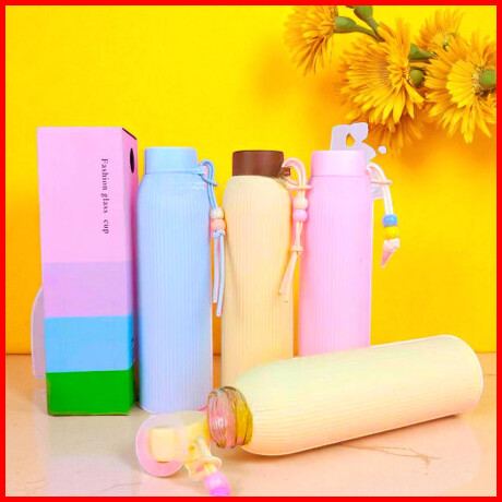 Tumbler Botol Kaca Lapis Plastik Warna Aesthetic Manik Korea Macaron Pastel Tali Gandul 400ml 2237