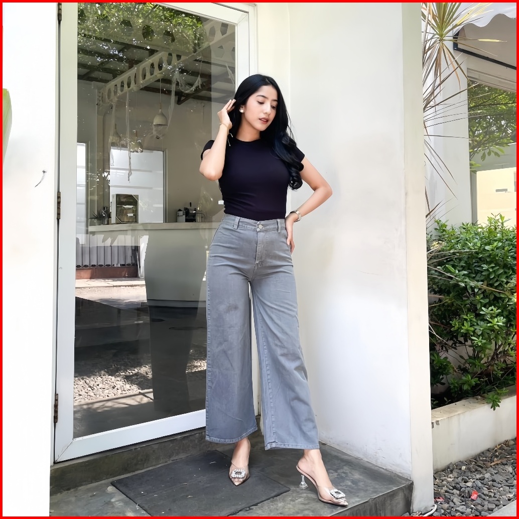Qf Higwaitshigh Waist Kulot Jeans Wanita Premium Asli Jeans Tebal