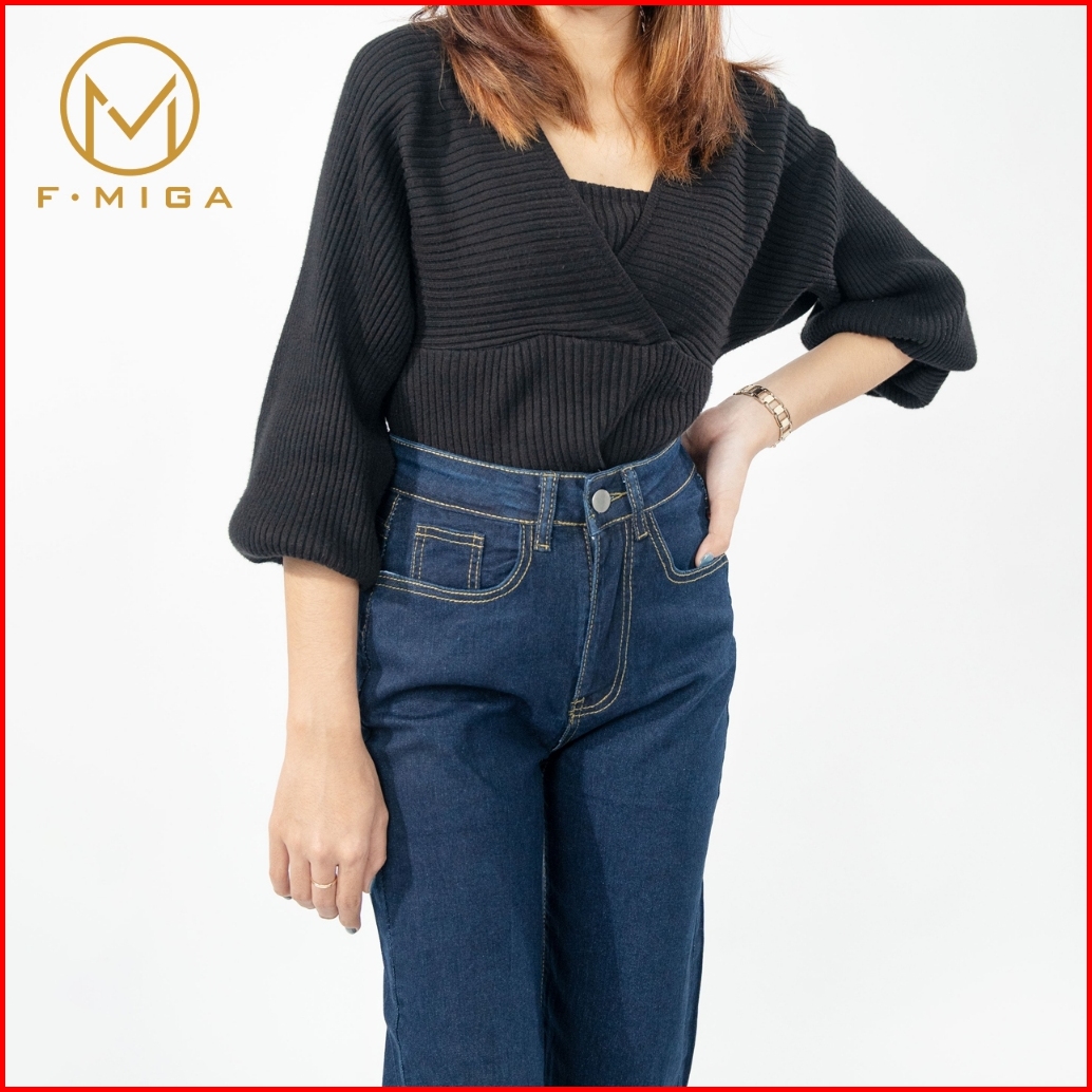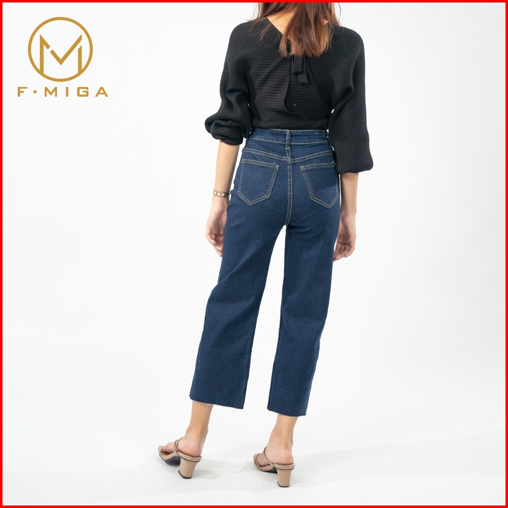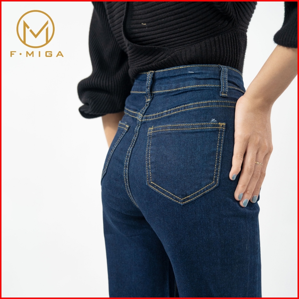 F Miga C181 Korean Style Highwaist Stretch Kasual Pants Celana Jeans Wanita - Biru Laut