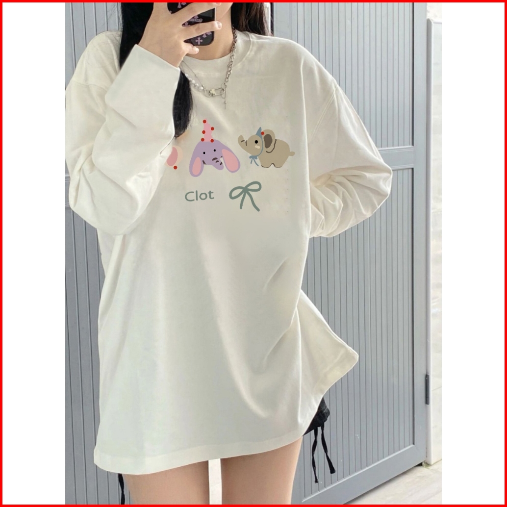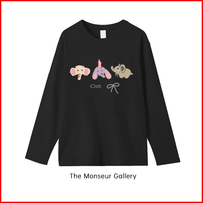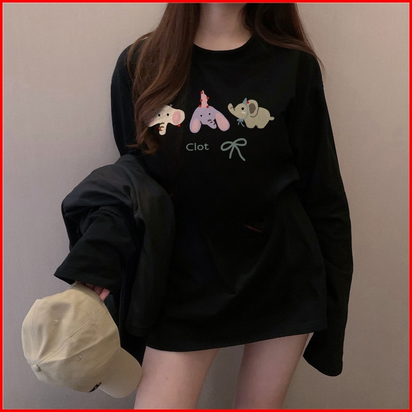 The Monseur Gallery Baju Kaos Wanita Lengan Panjang Kaos Oversize Wanita Baju Atasan Wanita Cartoon Cute Elephant Print