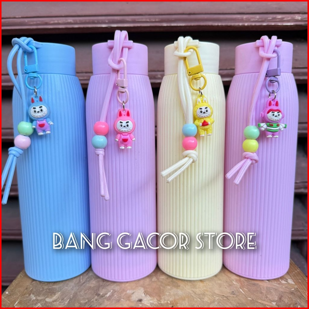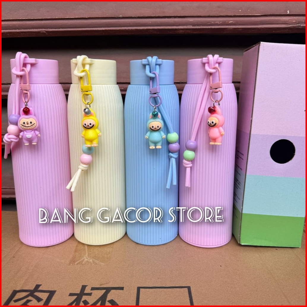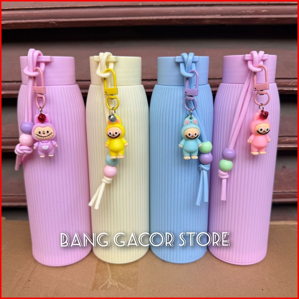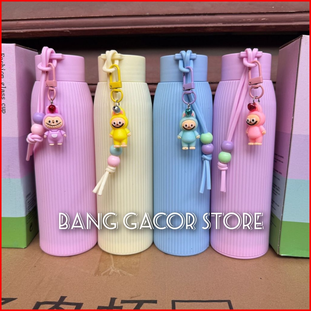Botol Minum 500ml Tumbler Jepang Bonus Gantungan Boneka Labubu Botol Minum Kaca Botol Macaroon Cantik Murah Meriah Berku
