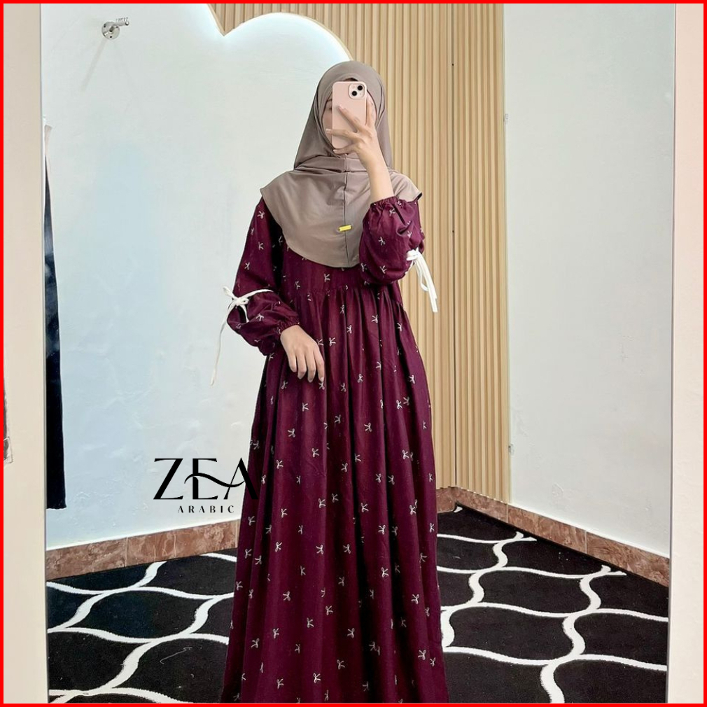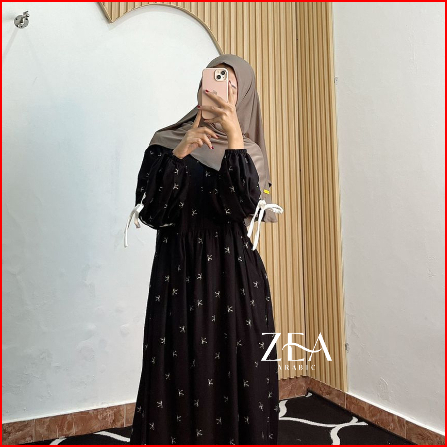 Hania Dress Gamis Rayon Motif Pita Lengan Balon Bahan Rayon Diamond By Zeaarabic