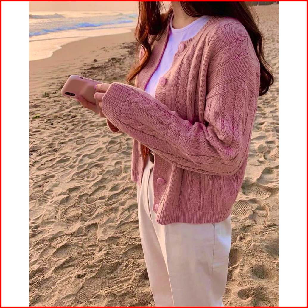 Olop Cardigan Rajut Kepang Cable Atasan Wanita Nayara Cardigan Rajut Kepang