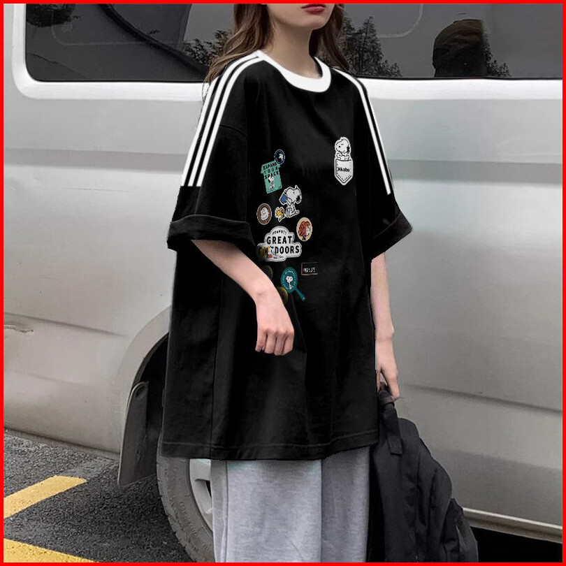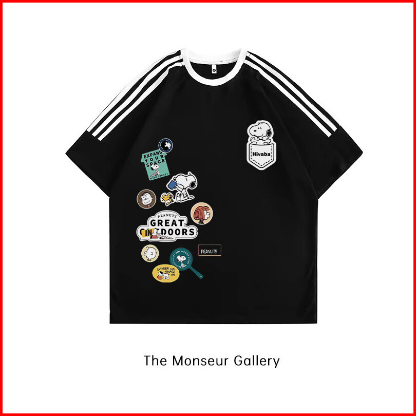 The Monseur Gallery Tali Bahu T-shirt Oversize Cartoon Snoopy Label Sticker Style Kaos Wanita Tali Bahu Hitam