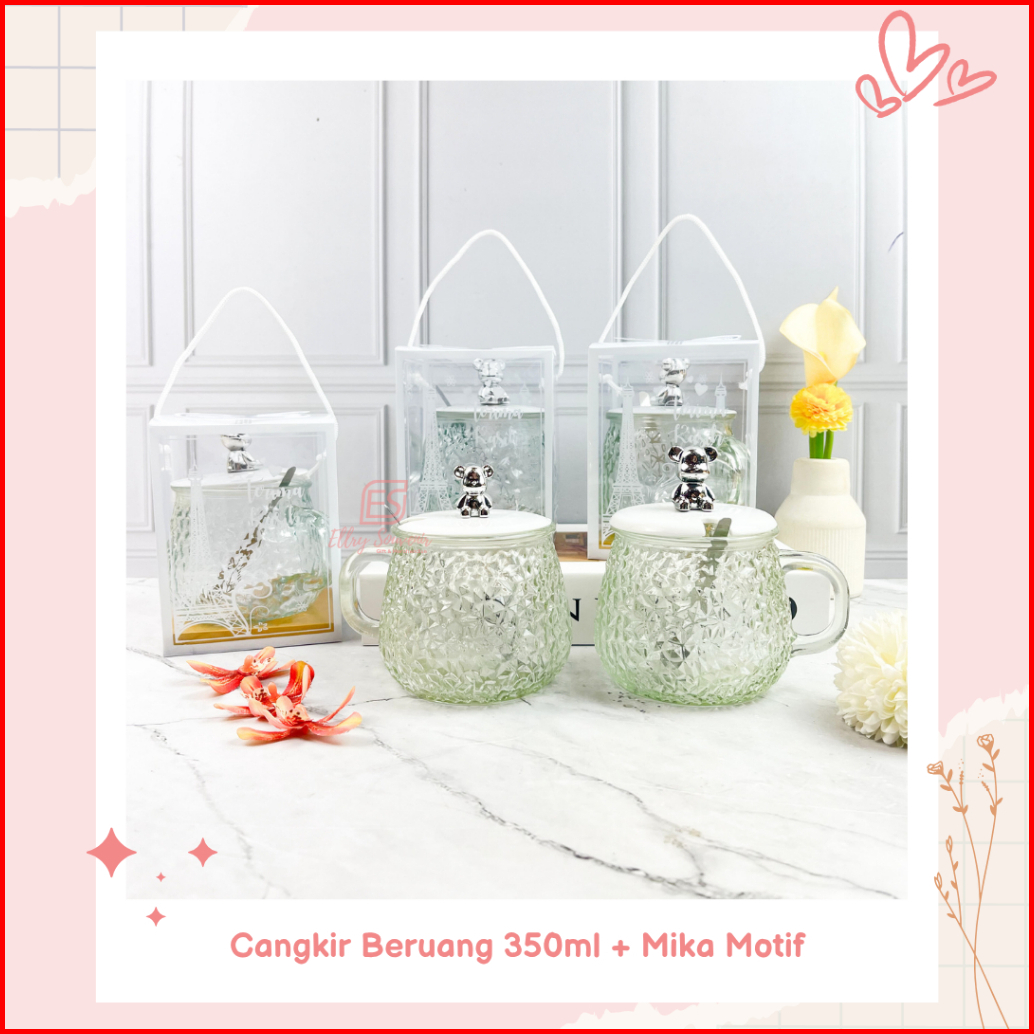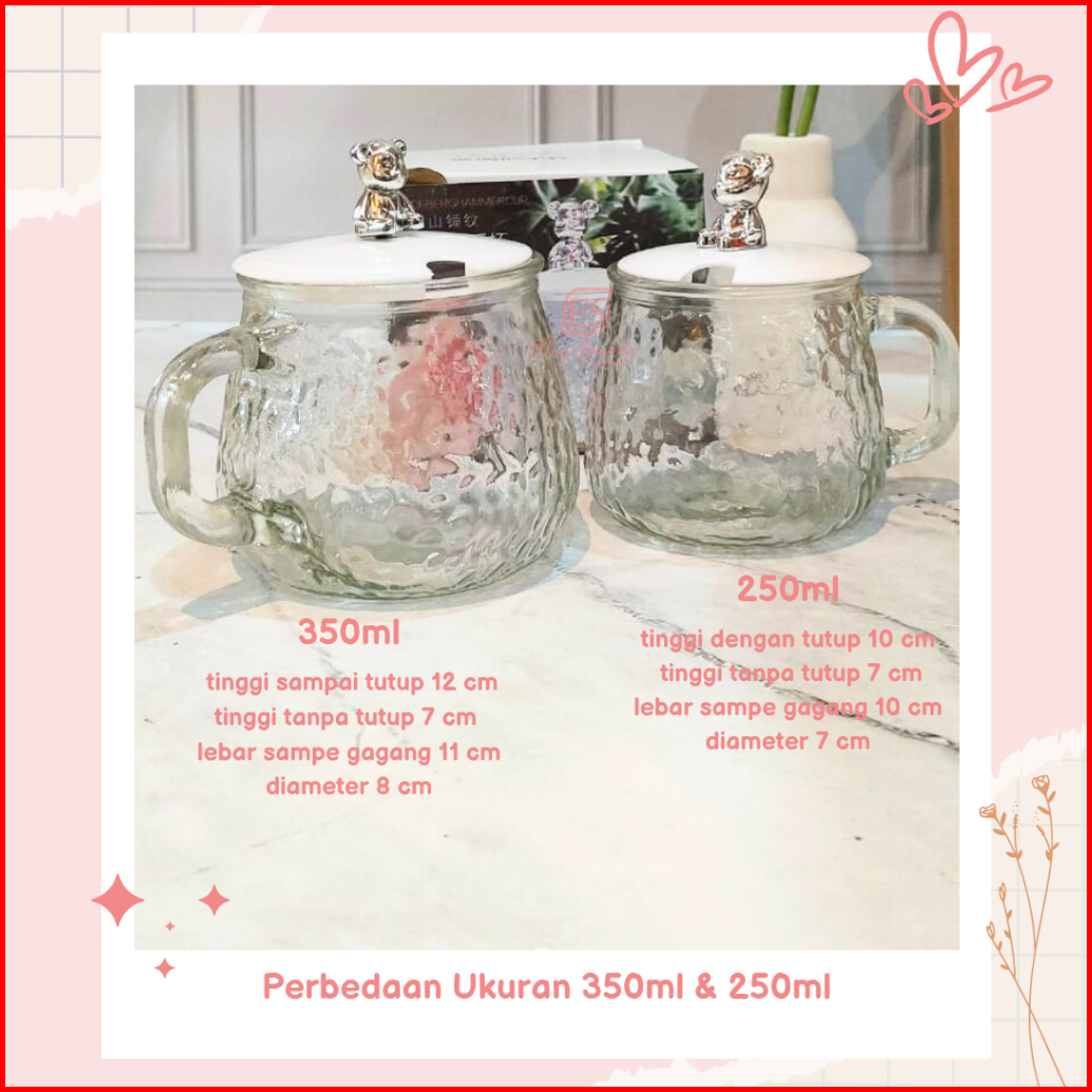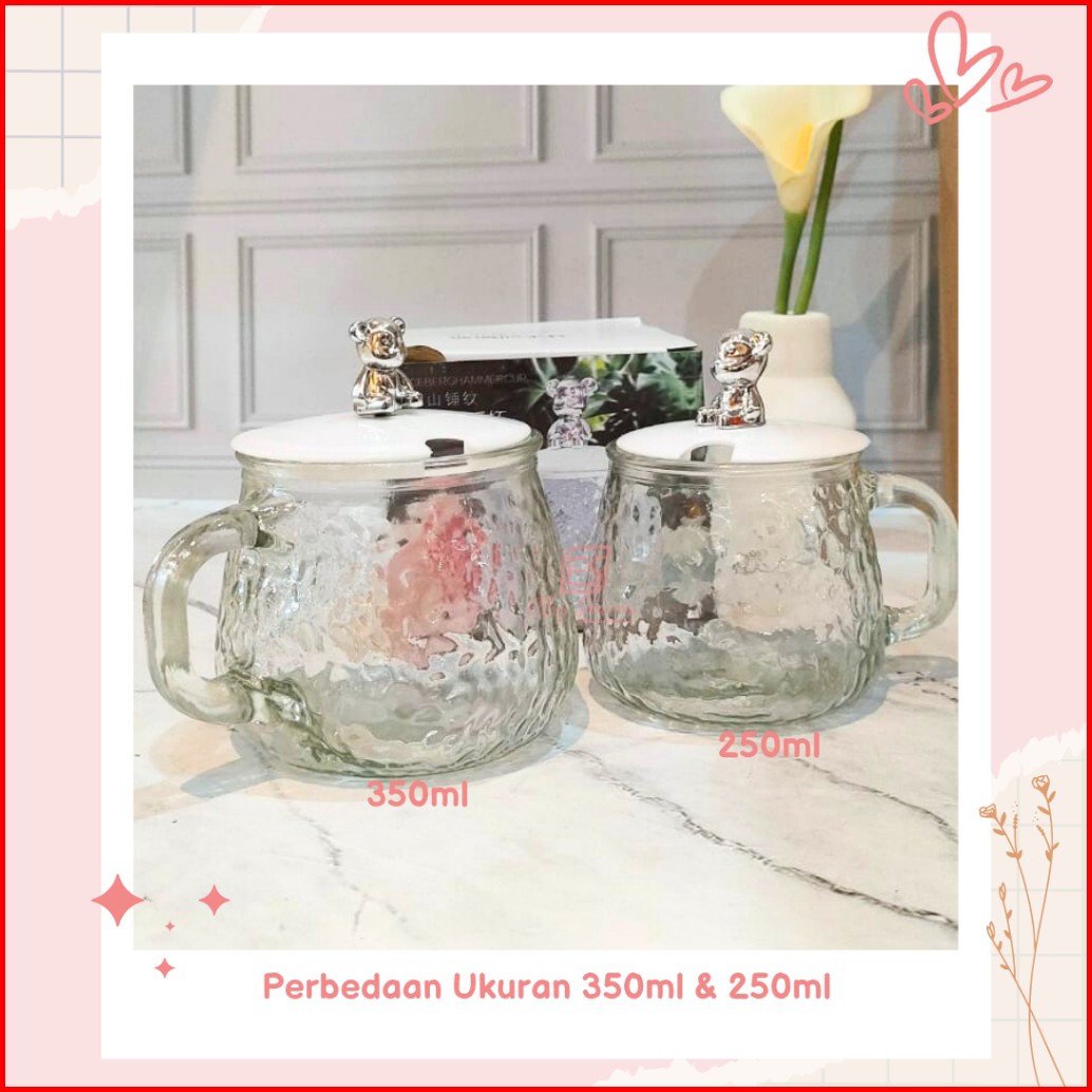 Isi 10 Pcs Gelas Mug Kaca Beruang 250ml 350ml Kemas Box Ivory Dus Bawaan Mika Motif