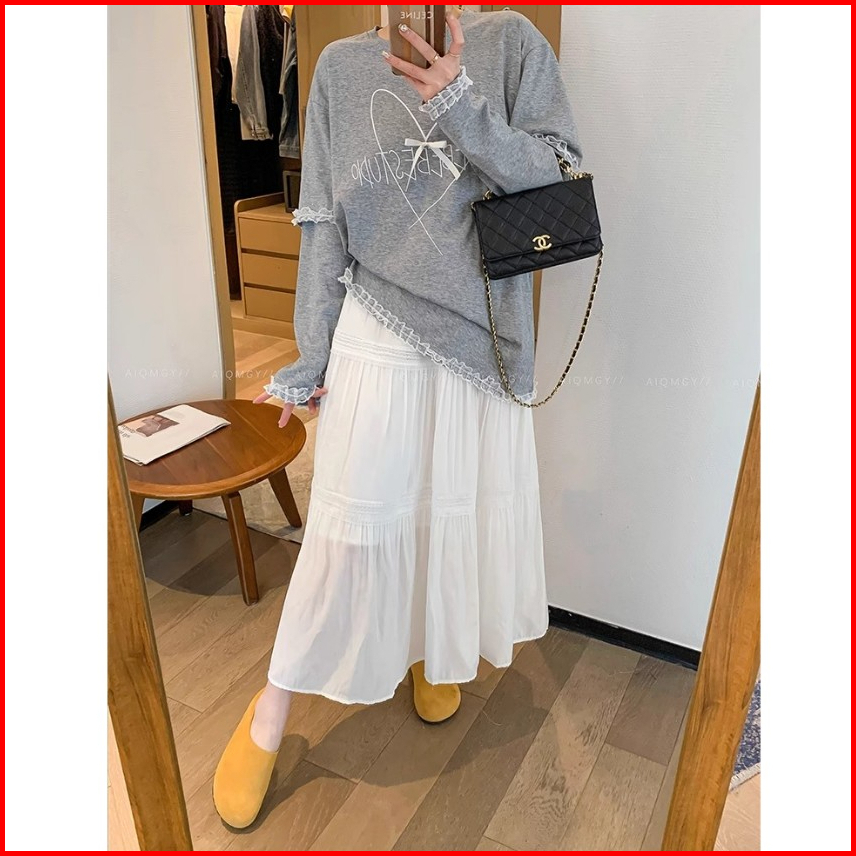 The Monseur Gallery Rok Putih Untuk Wanita Rok Model A Pinggang Tinggi Baru Rok Panjang Sedang Untuk Melangsingkan Tubuh