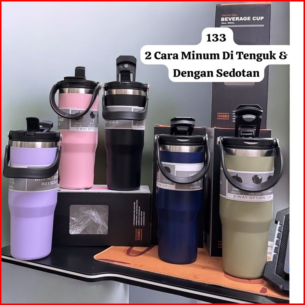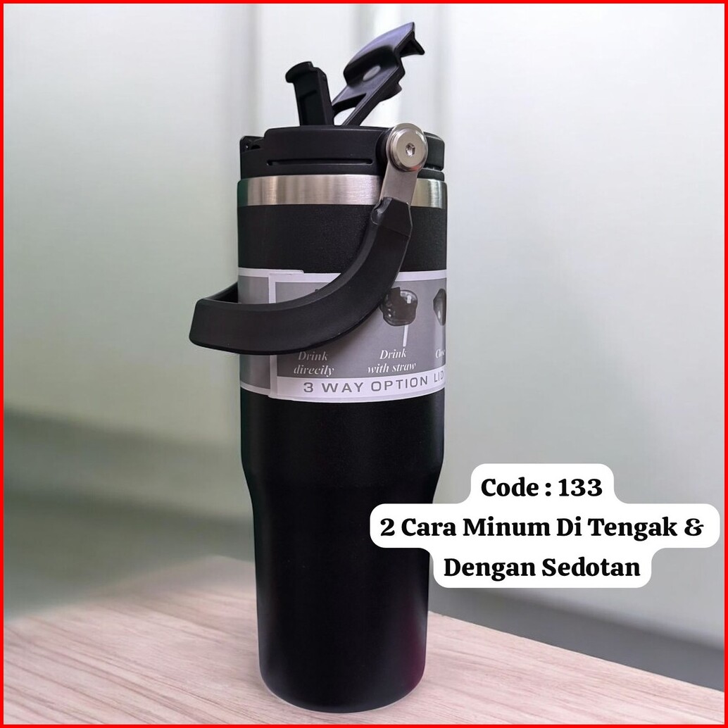 Tumbler 133 Stainless Dengan 2 Cara Minum Di Tengak Dan Dengan Sedotan 900ml 2in1