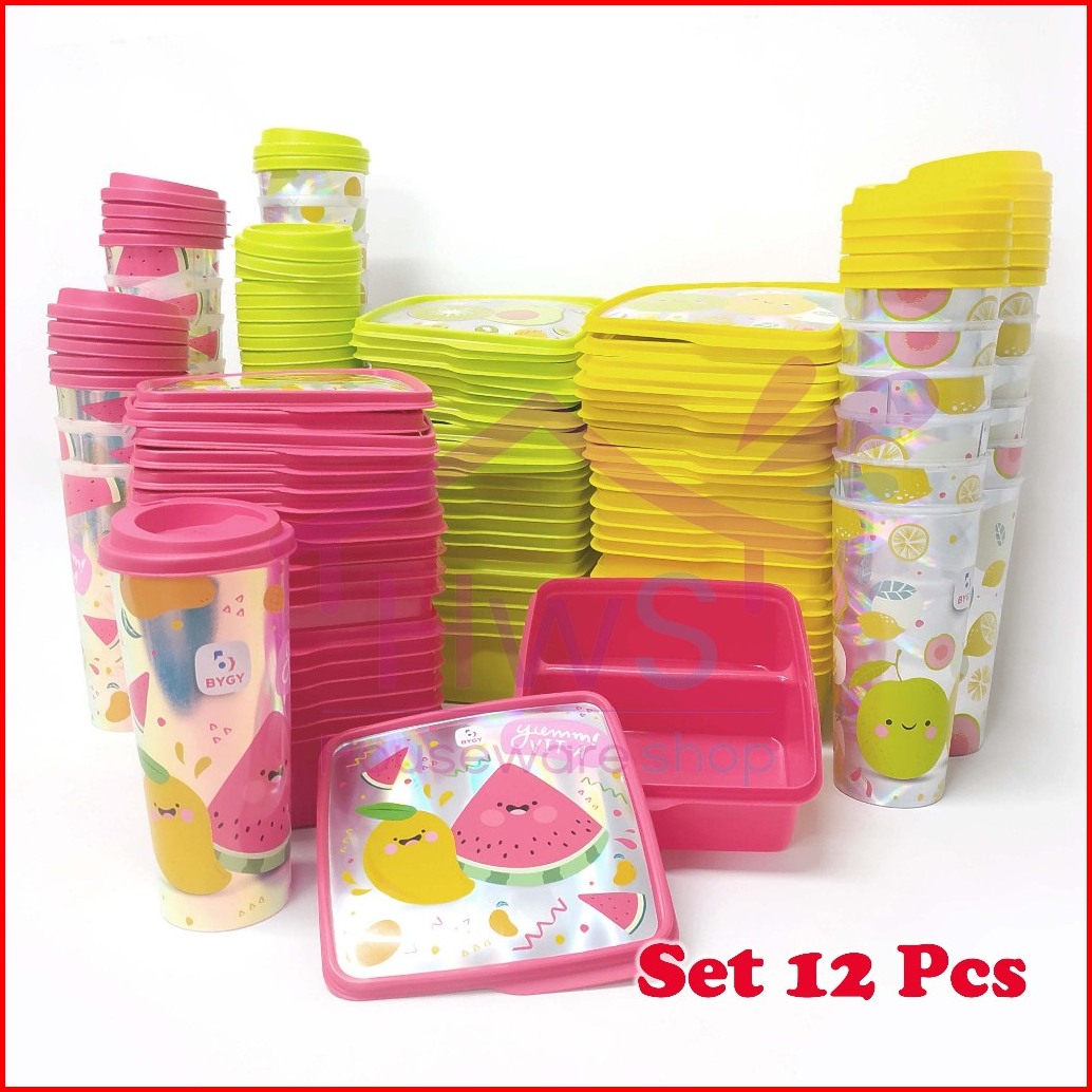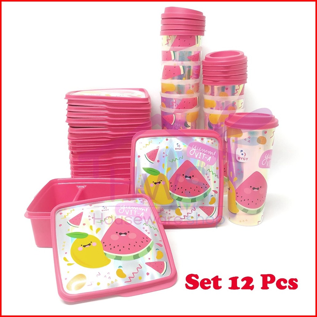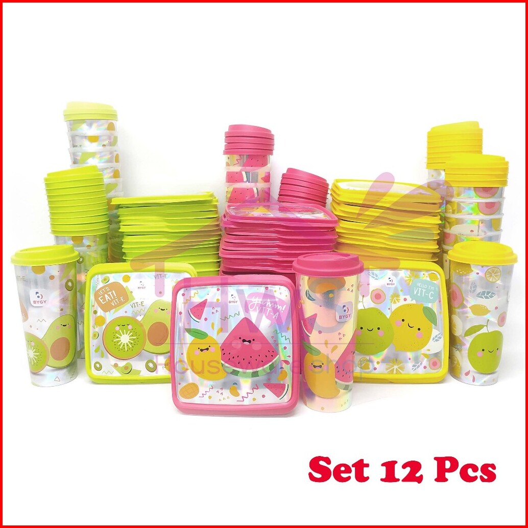 Bundling Set 12 Pcs Lunch Box Plastik Food Grade Gelas Tutup Fruitamin - Tempat Bekal Tempat Minum Buah - Souvenir Ulang
