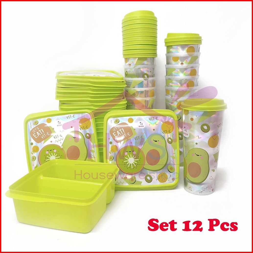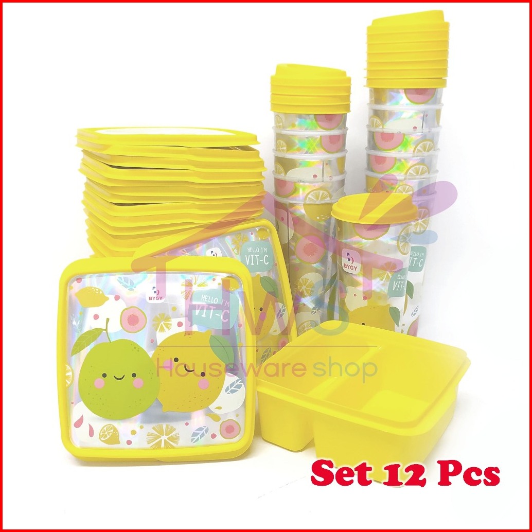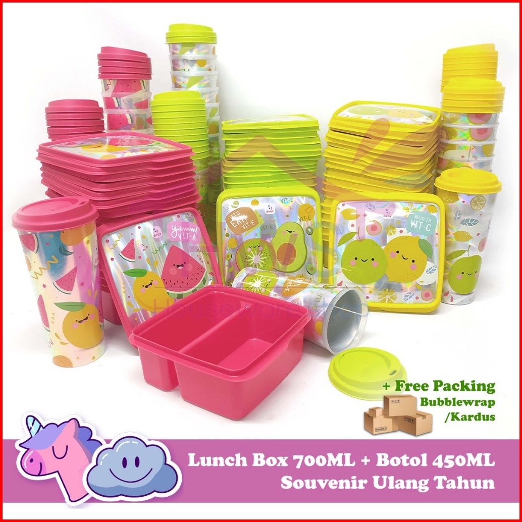 Bundling Set 12 Pcs Lunch Box Plastik Food Grade Gelas Tutup Fruitamin - Tempat Bekal Tempat Minum Buah - Souvenir Ulang