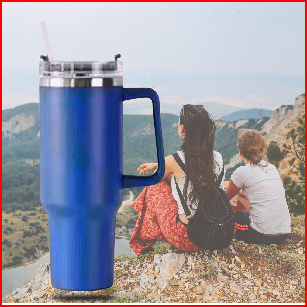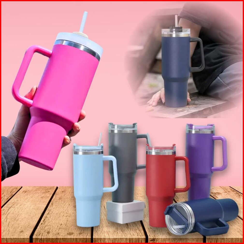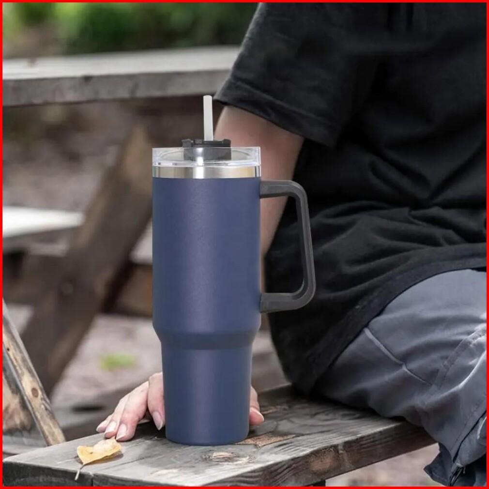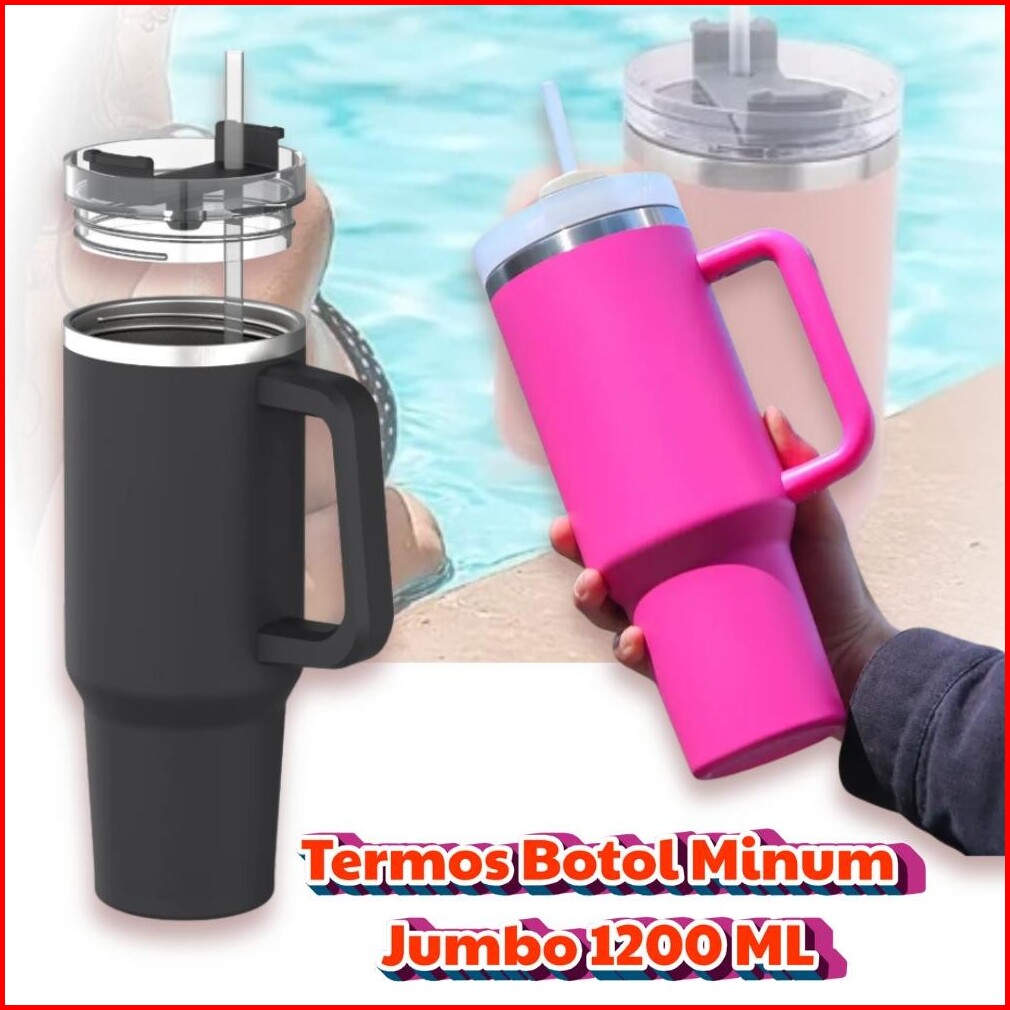 Tumblr Termos Gelas Botol Minum Jumbo Besar 1200 Ml Tahan Panas Dingin Stainless Steel Sedotan Handle Pegangan
