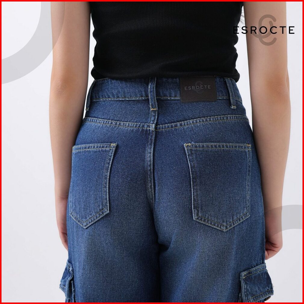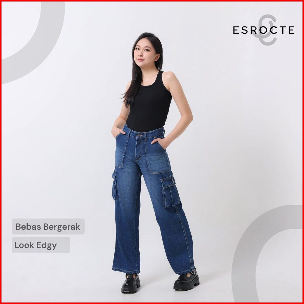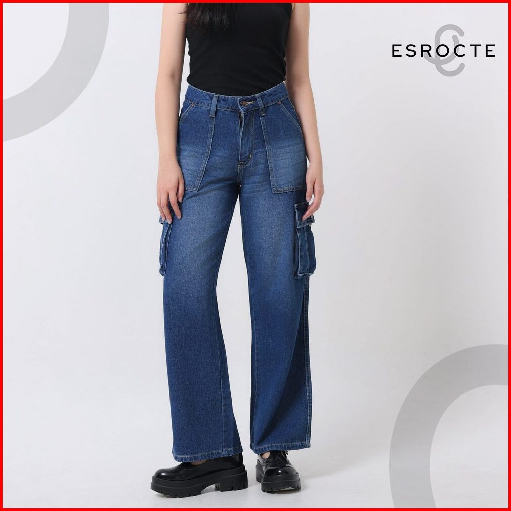Esrocte Mavi Pants Celana Cargo Baggy Jeans High-waist Wanita Navy Whisker Spray 2638