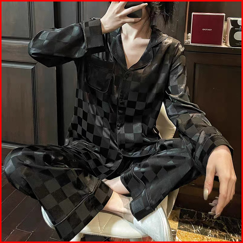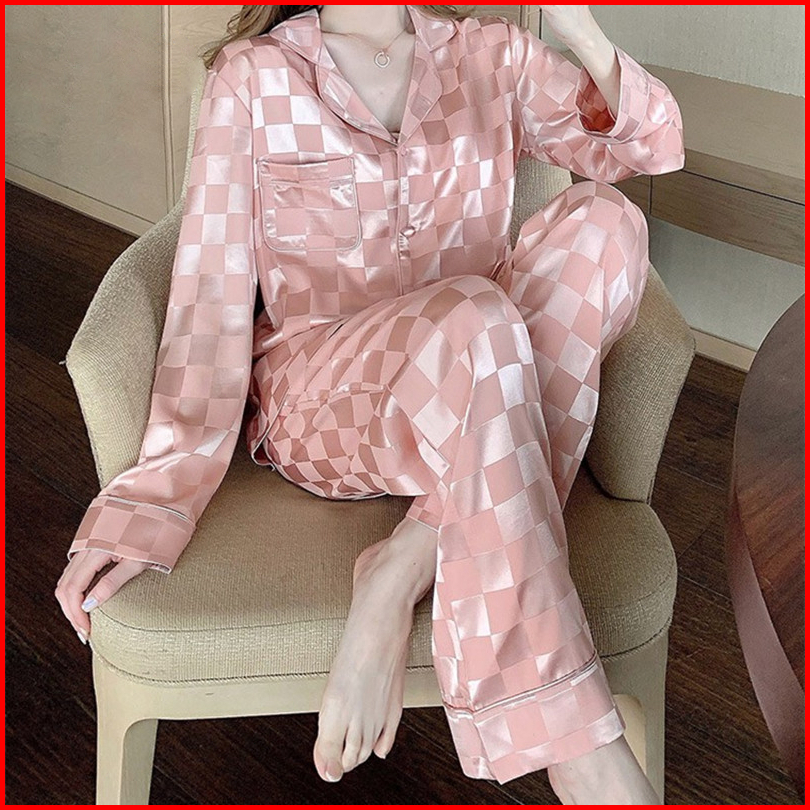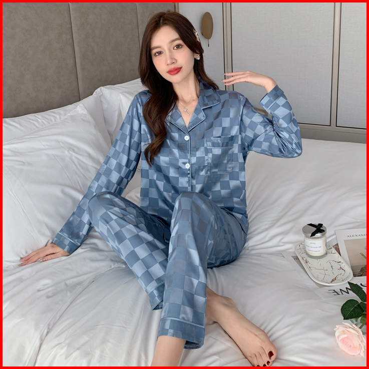 Setelan Piyama Wanita Mewah Berlapis Satin Polos Dengan Lengan Panjang Untuk Pakaian Rumah.