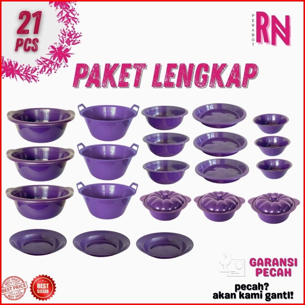 21 Pcs Paket Lengkap Peralatan Rumah Tangga Set Dapur Plastik Baskom Bak Kuping Nampan Basi Sayur Piring Mangkok Hampers