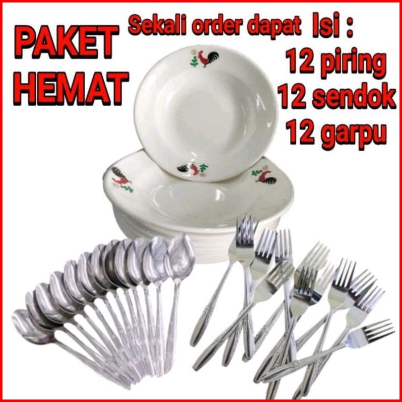 Paket Hamat 12 Piring 12 Sendok 12 Garpu Stainless Steel
