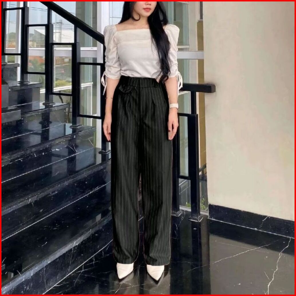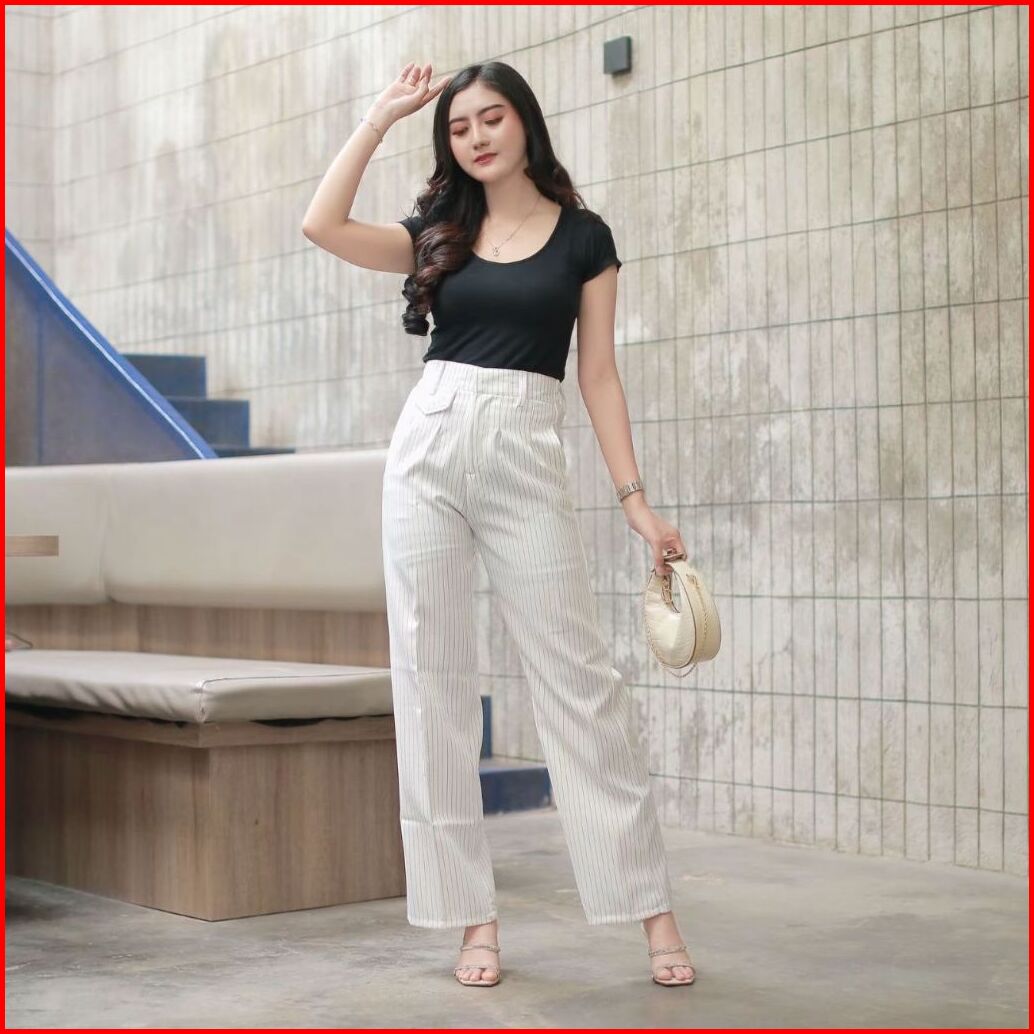 Oro Pants Strip Bangkok Kekinian Celana Wanita Anti Kusut Celana Highwaist Kulot Wanita Loose Pants Trouser Murah