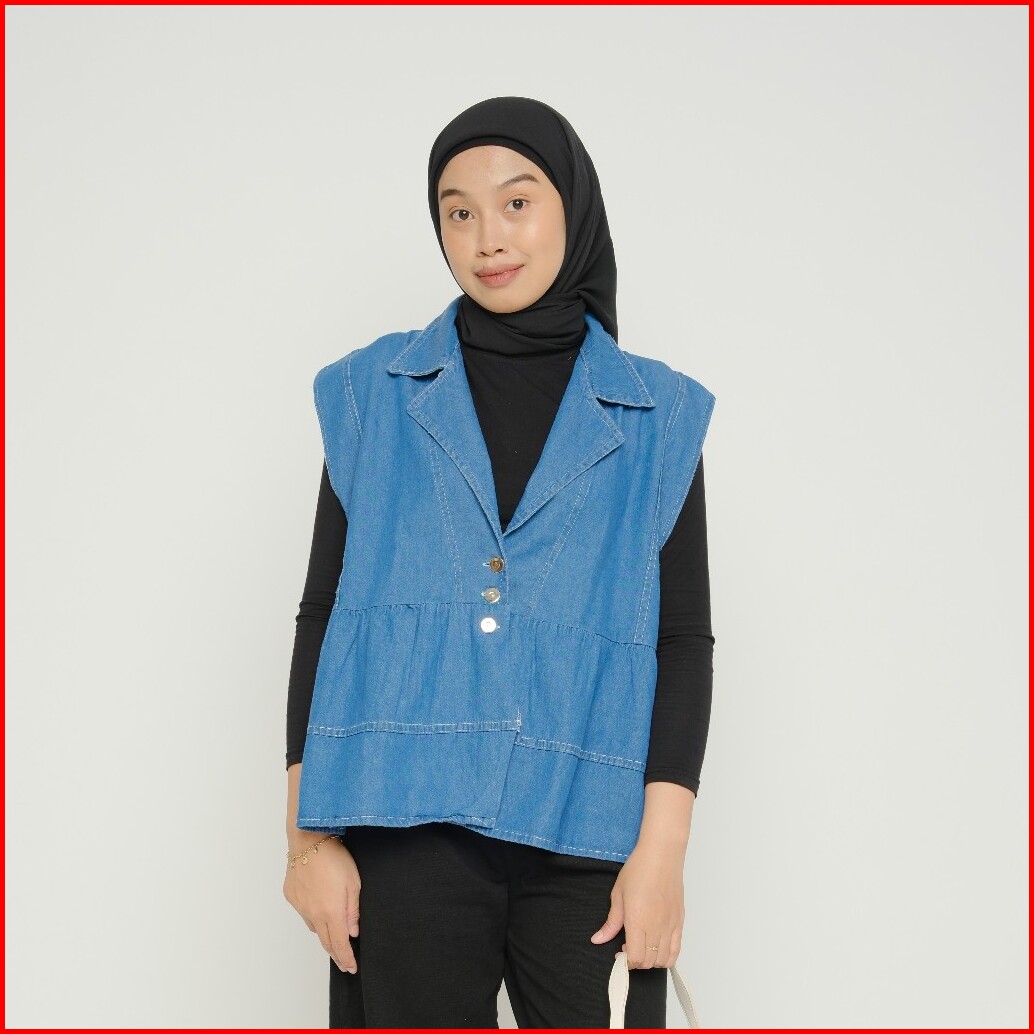 Grosir Solo Melodie Vest Jeans Wanita Atasan Baju Remaja Dewasa Outer Rompi Jeans Wanita
