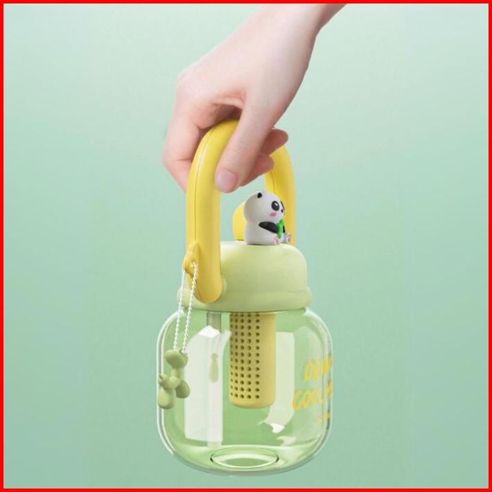 Tumbler Botol Minum Viral Aesthetic Dua Cara Minum Karakter Panda Korea 800ml Sedotan Handle Besar -3123