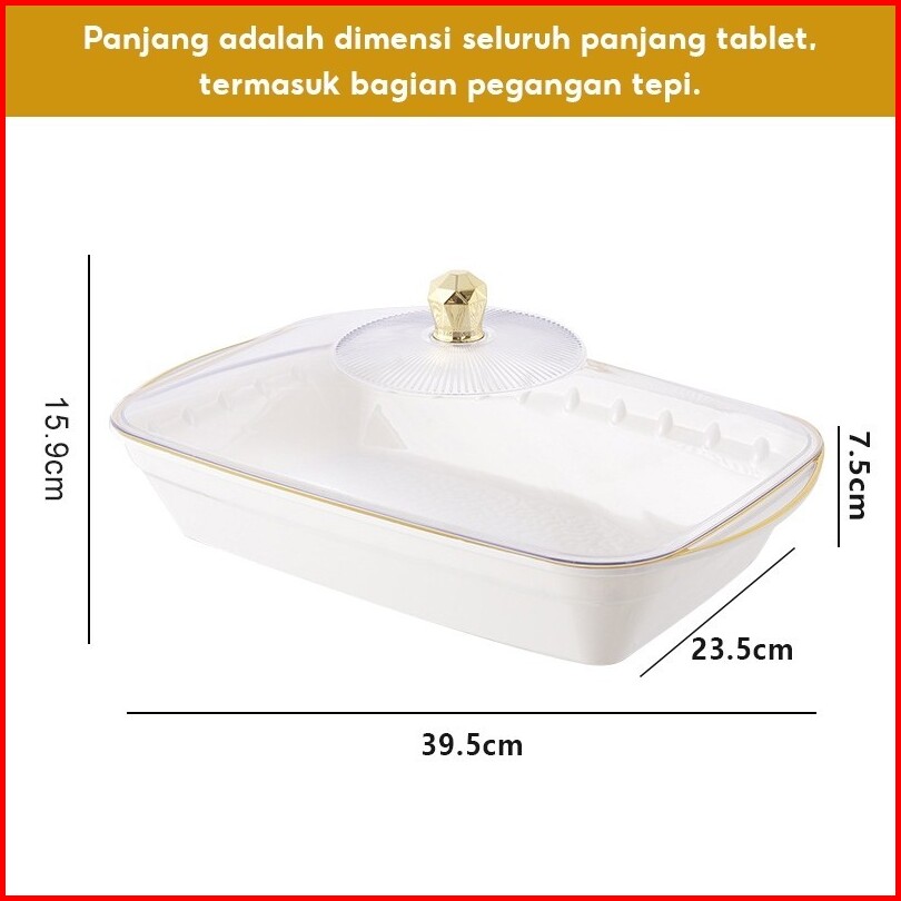 Produk Terbaru Aesthetic Nampan Saji Dengan Tutup Piring Persegi Panjang Putih Dengan Tutup