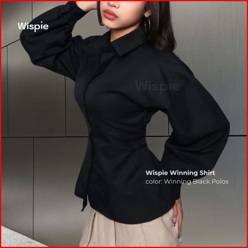 Wispie Winning Shirt Kemeja Fitted Blouse Lengan Panjang Wanita Warm Grey Hitam