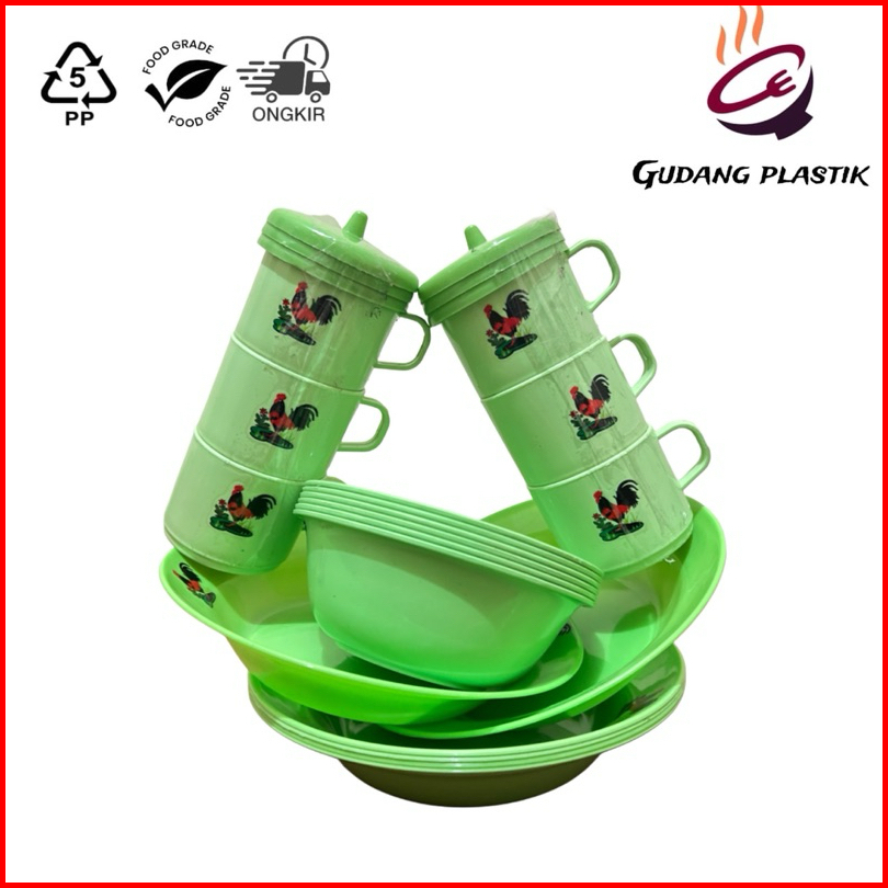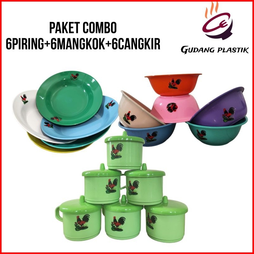 Paket Combo 6 Mangkok 6 Piring 6 Cangkir Ayam Jago