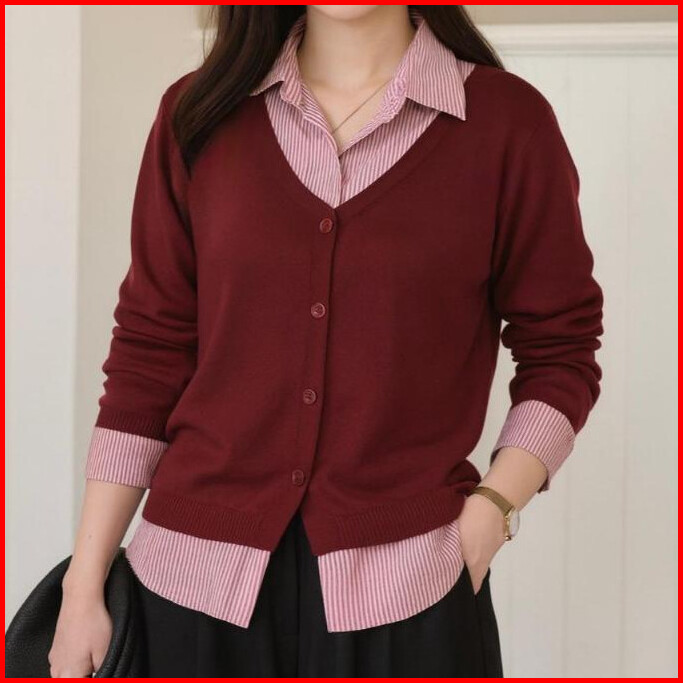 Deer Fashion - Yuki Top Kemeja Kombinasi Kantoran Kasual Kemeja Garis Lengan Panjang Longsleeve Korean Style