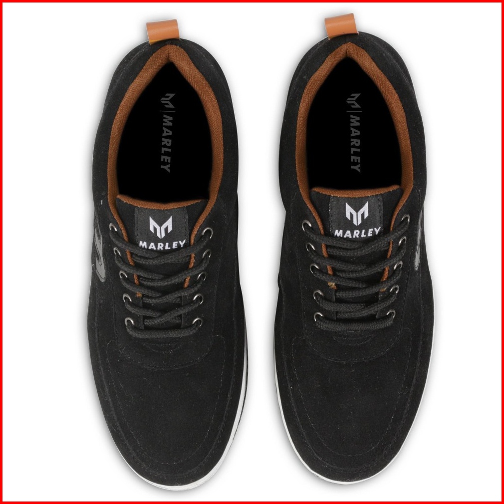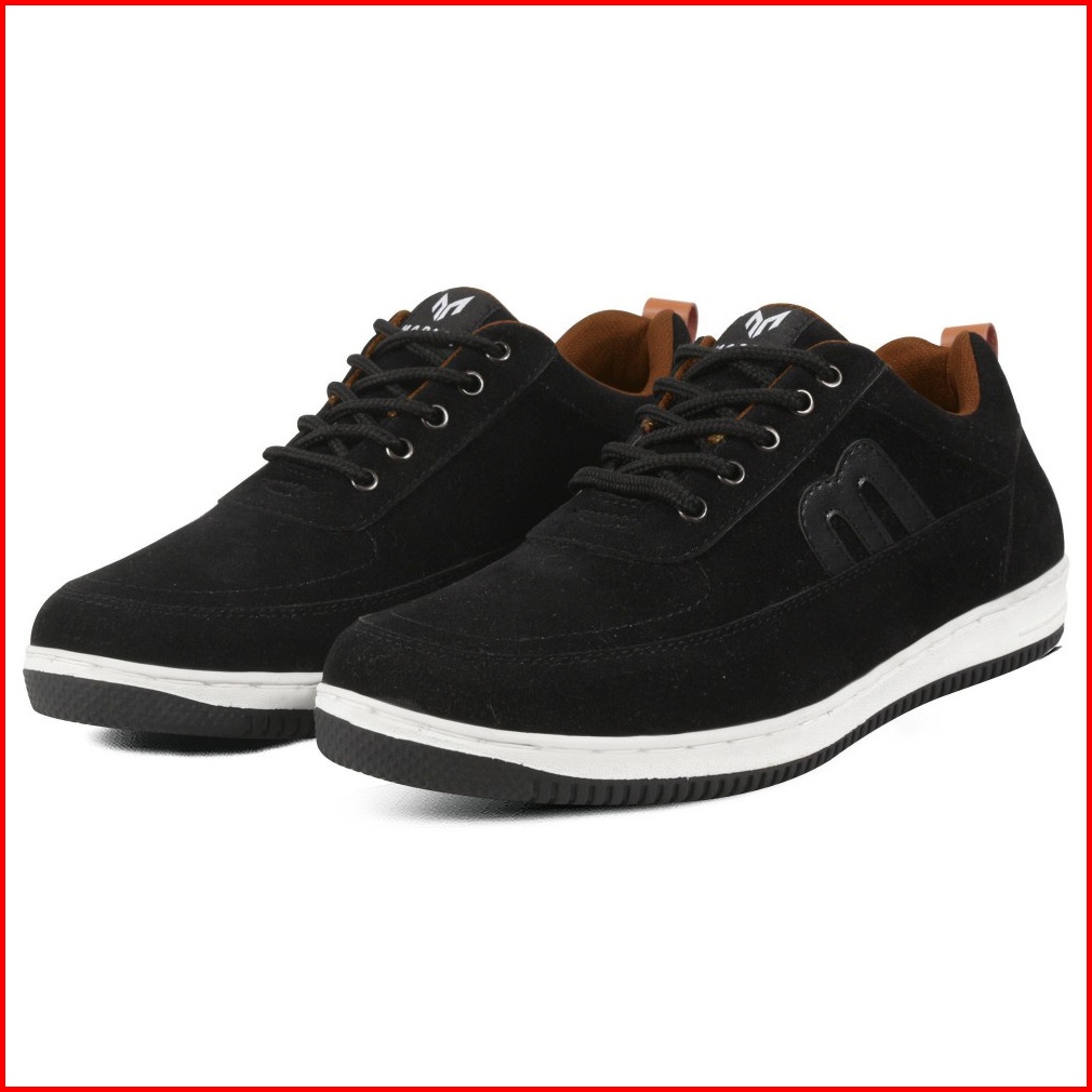 Marley Morgan 01 - Marley Sepatu Sneakers Pria Casual Kerja Formal Kantor Warna Hitam Bahan Suede