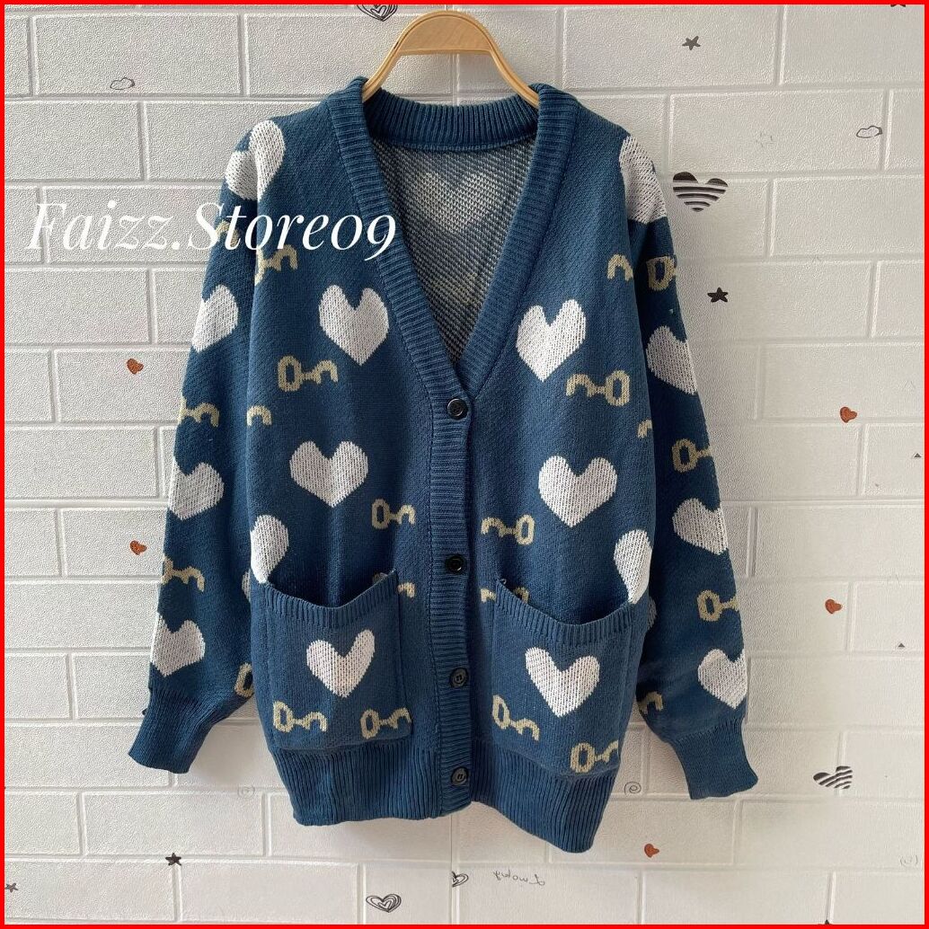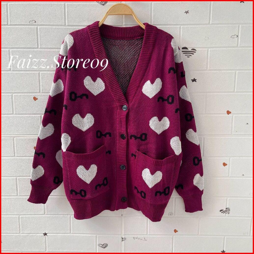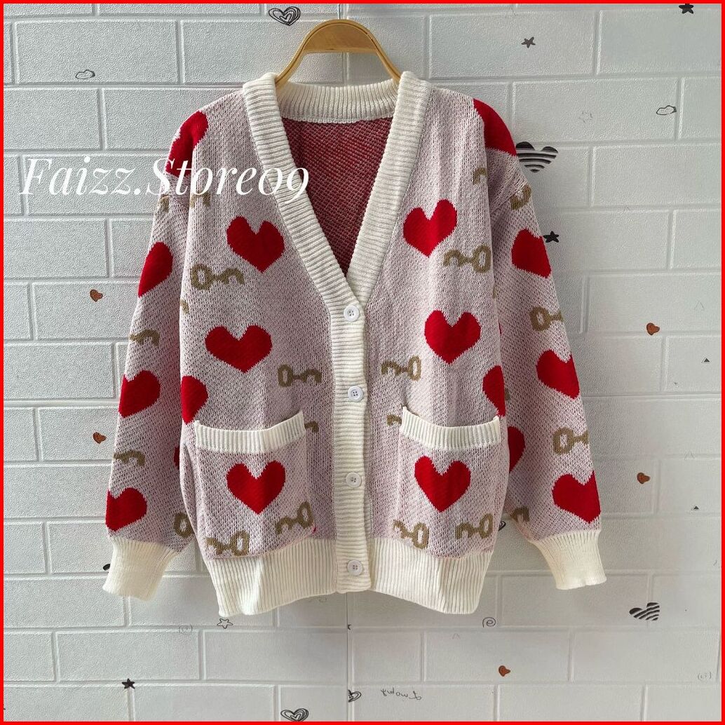 Cardigan Rajut Kancing Valentine Motif Love Kunci Oversize Outer Wanita