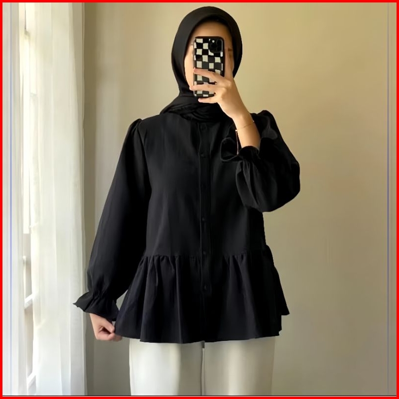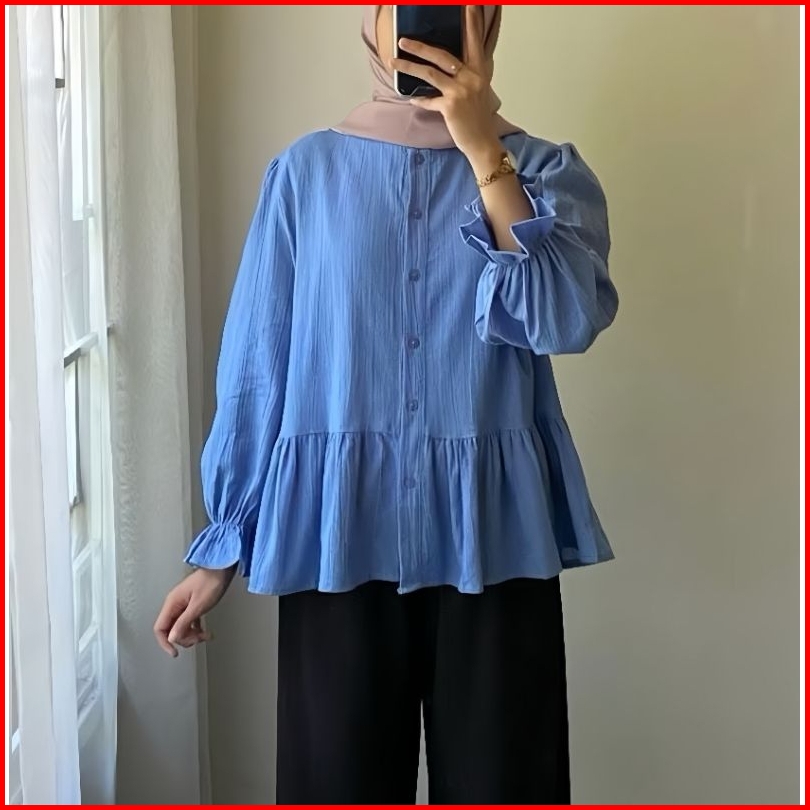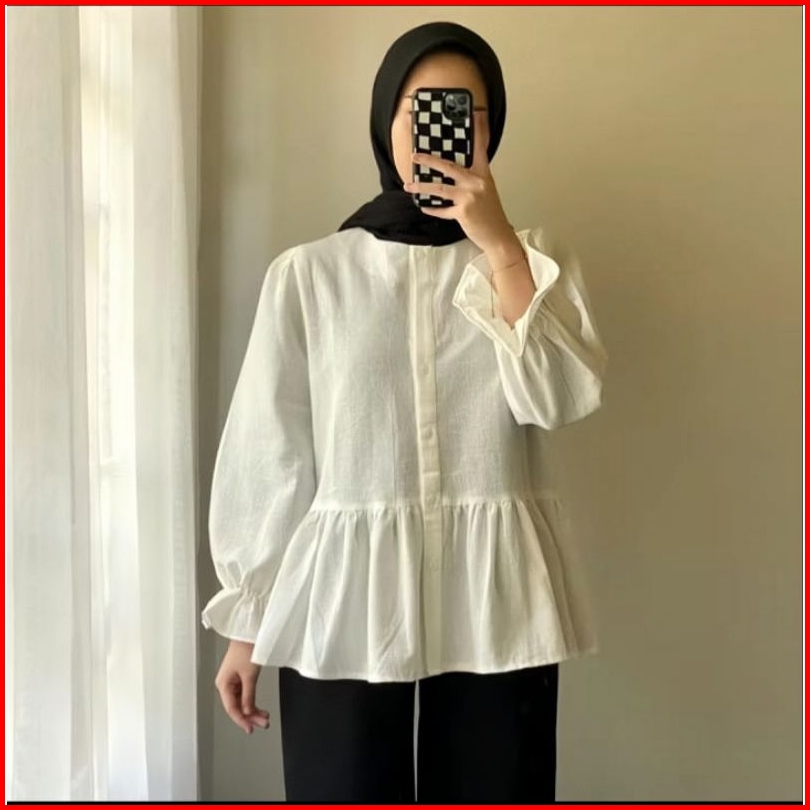 Lolly Ruffle Shirt - Kemeja Oversize Linen - Atasan Wanita
