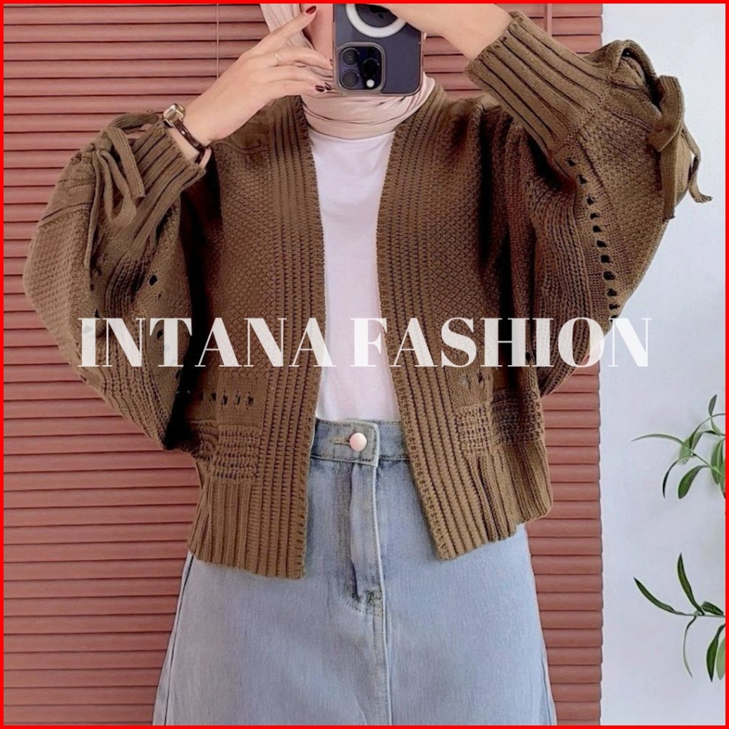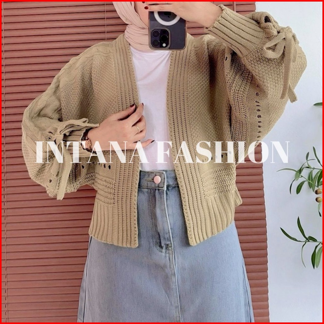 Intana Fashion Kathy Cable Cardi Outer Atasan Wanita Rajut Cadigan Lucu Acrylic Tebal Kardigan Crop Oversize