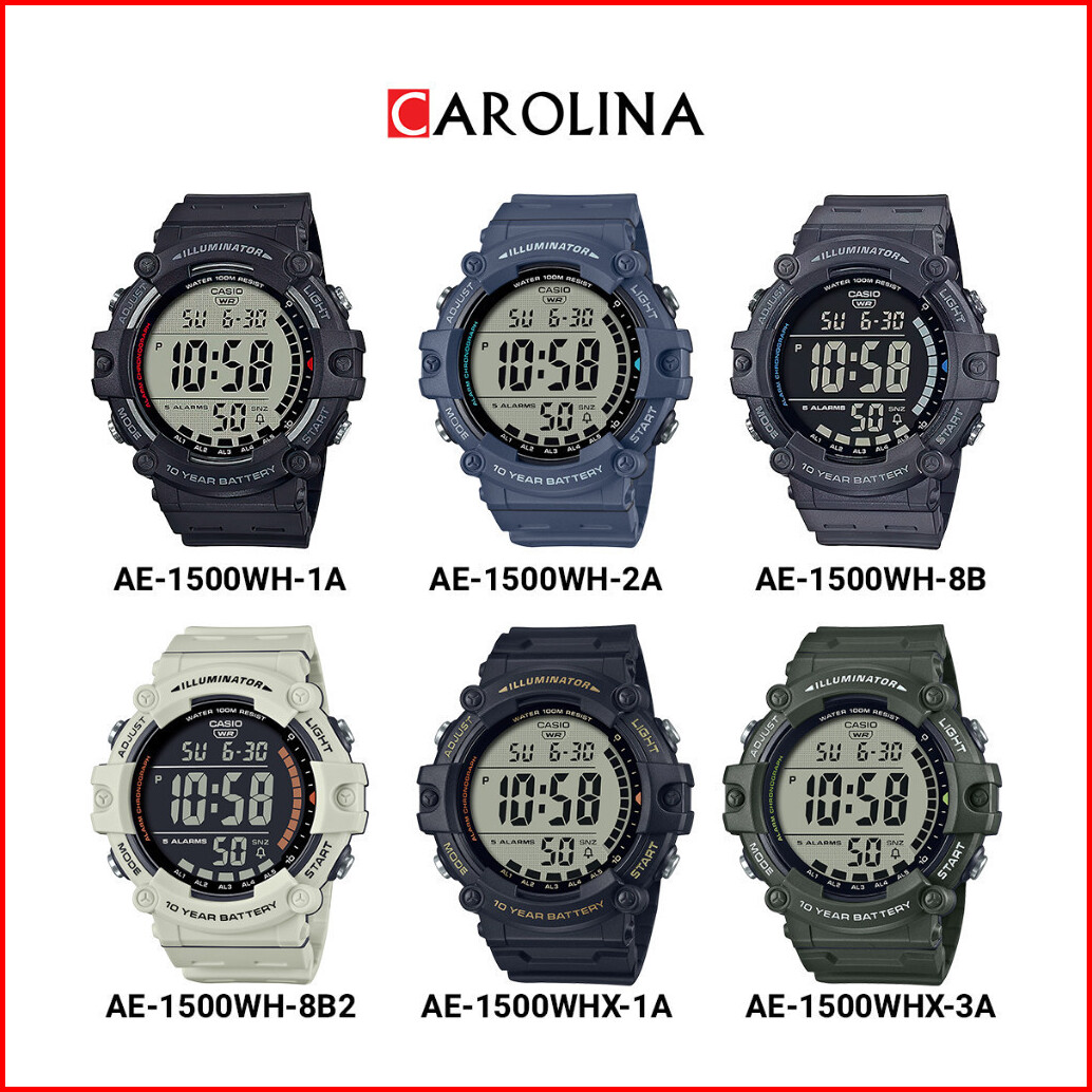 Jam Tangan Pria Casio Ae-1500wh-8b2 Digital Dial Pale White Resin Band