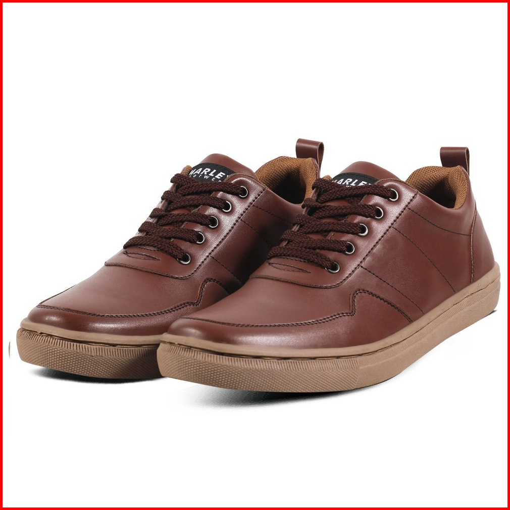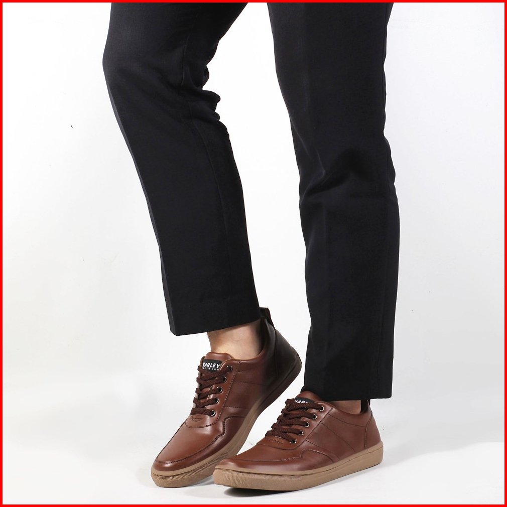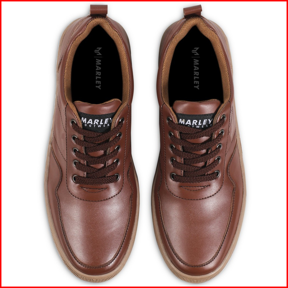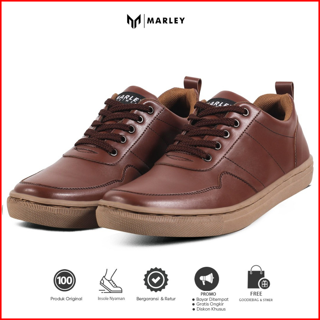 Marley Owen 15 - Marley Sepatu Sneakers Pria Kets Semi Formal Kerja Kantor Coklat Bahan Kulit Sintetis