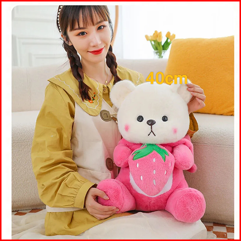 Boneka Teddy Bear Costum Lotso Hoodie Strawberry Hadiah Anak Ulang Tahun Kado Viral