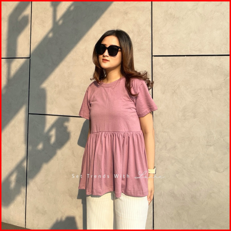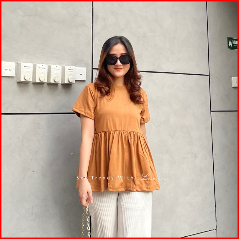 Ratu Rempel Blouse Lengan Pendek Bahan Kaos Cotton Combed Atasan Peplum Cantik