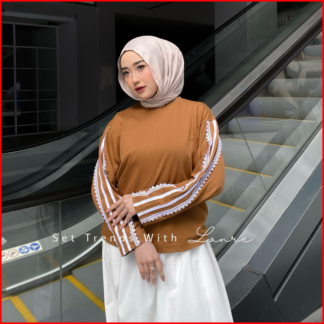Gu Top Atasan Bahan Kaos By Lanre - Blouse Wanita Lengan Panjang Basic Long Sleeve