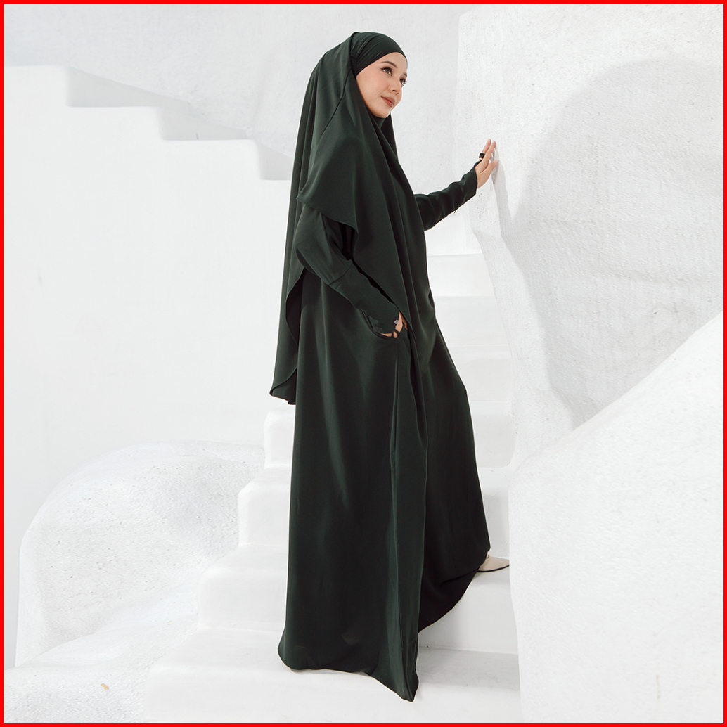 Lozy Hijab - Khadija Abaya Set Abaya Gamis Set French Khimar Haji Dan Umrah Bahan Safa Anti Uv