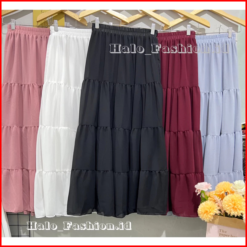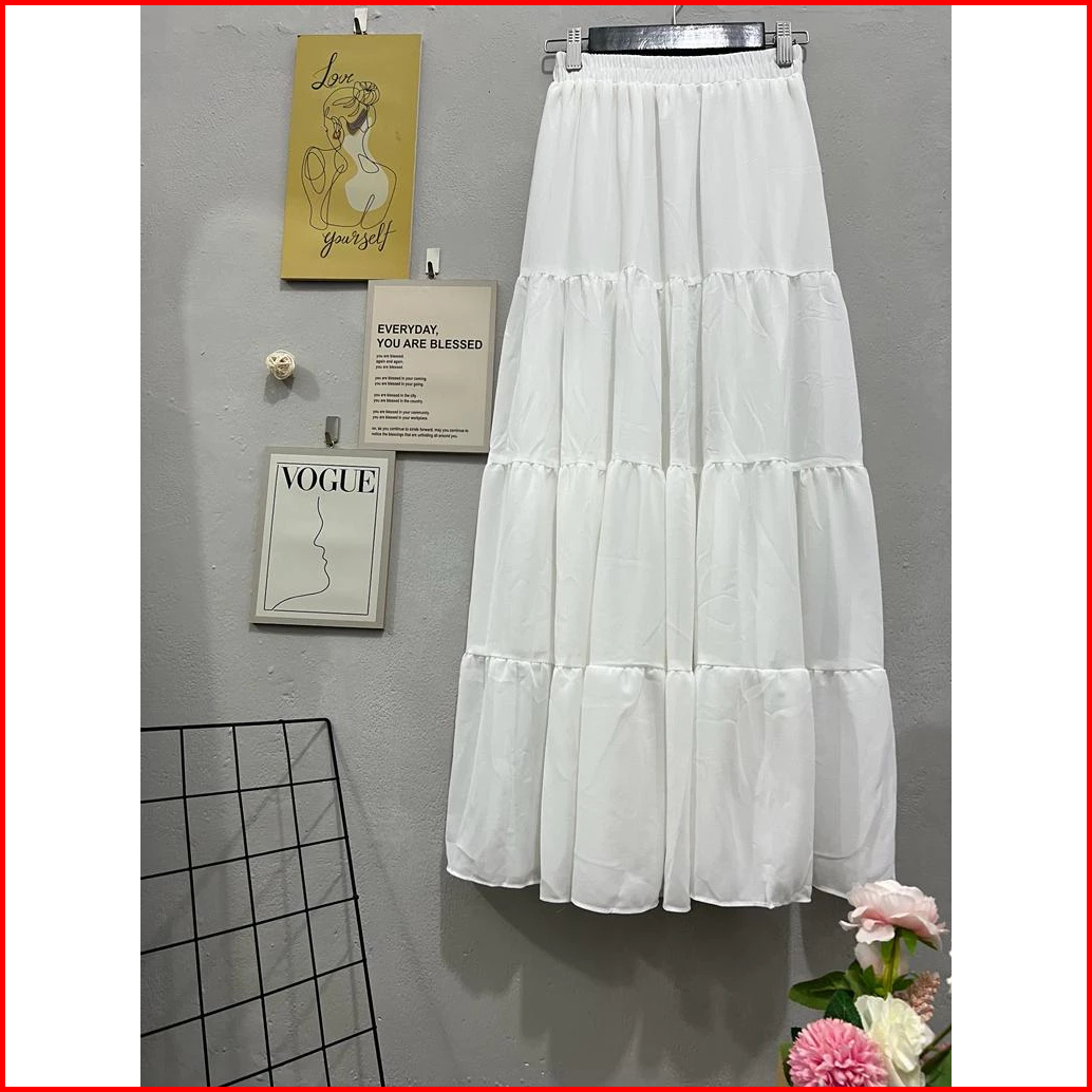 Mou Rok Panjang Beraksen 4 Susun Long Skirt Korean Style Rok Wanita Muslim