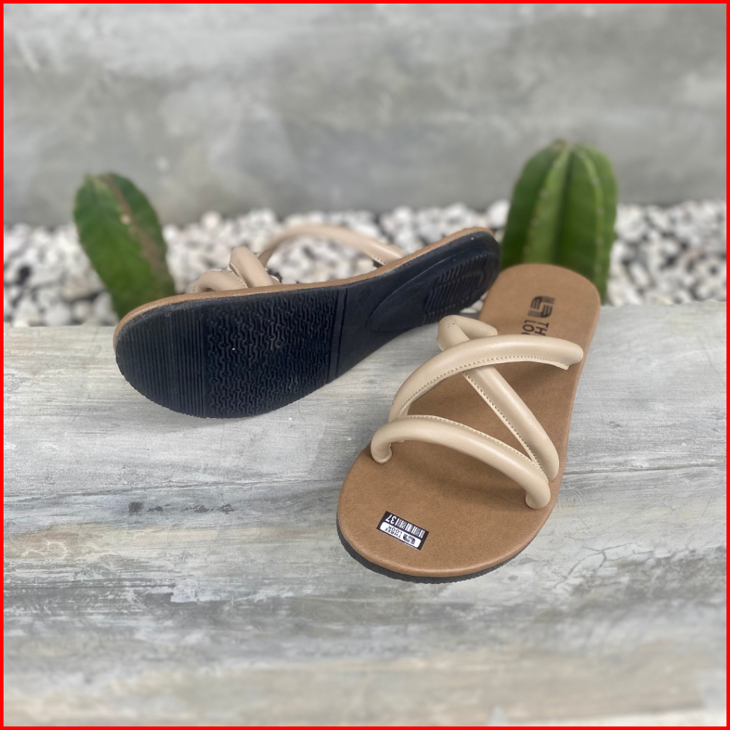 Threelook - Sandal Kulit Wanita Slop Silang Balon Fluppy Terbaru Kekinian Viral 2024 Selop Jelly - Clue